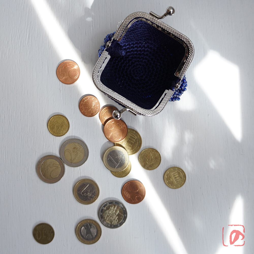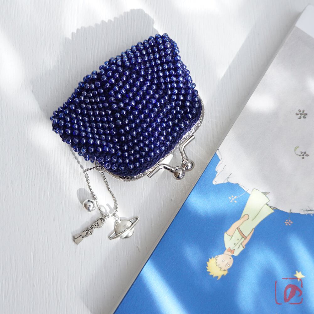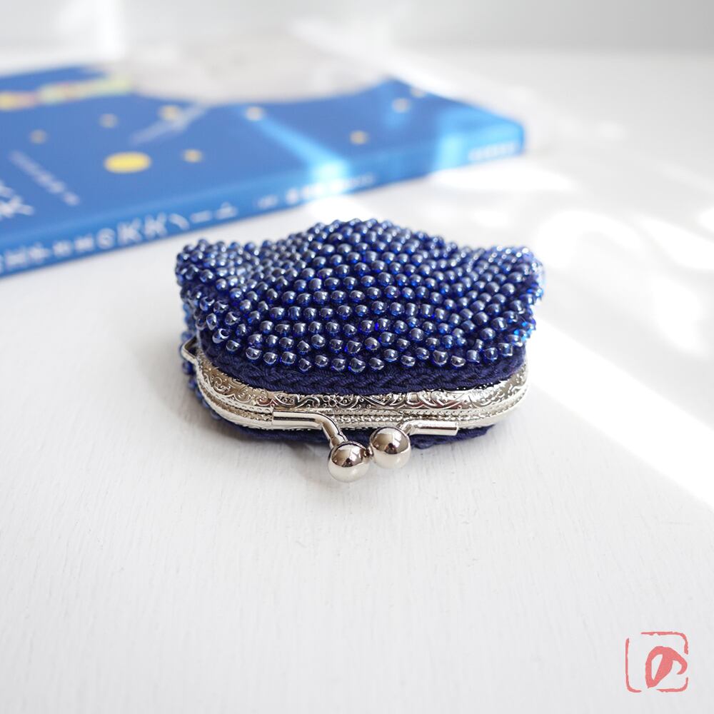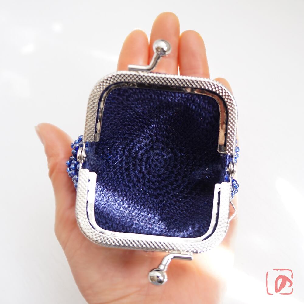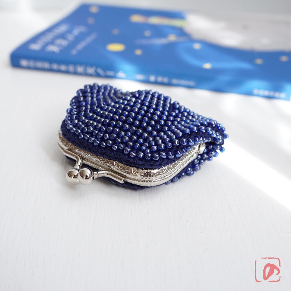 3mmのガラスビーズをひとつぶづつ編み込んだがま口です。