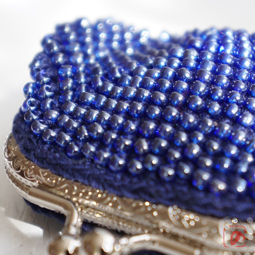 紺色の糸×ブルーのビーズ、ビーズの深い輝きが美しいです。
