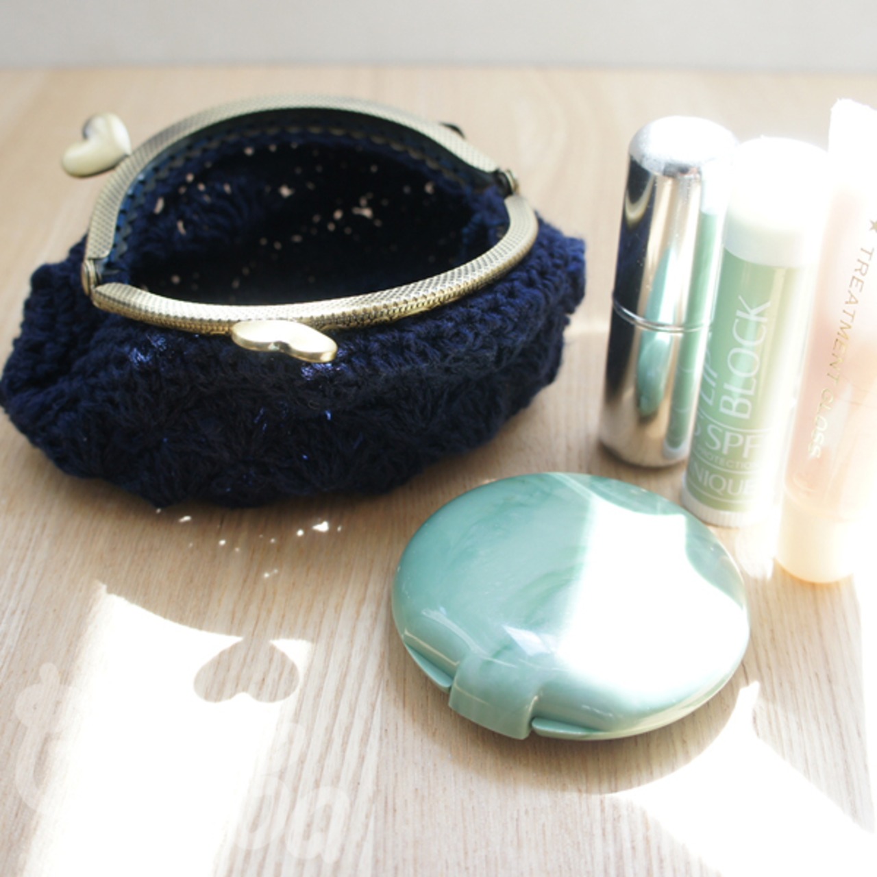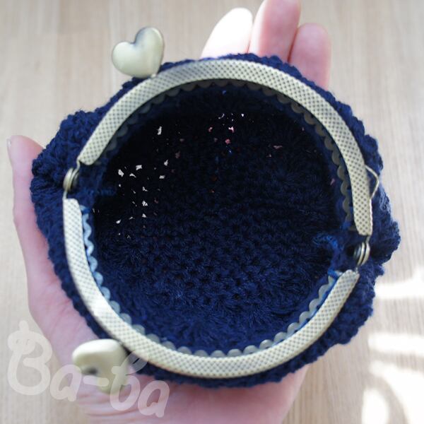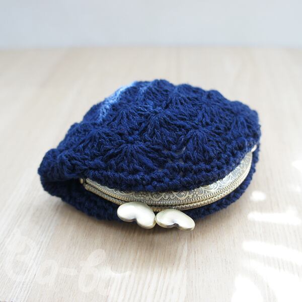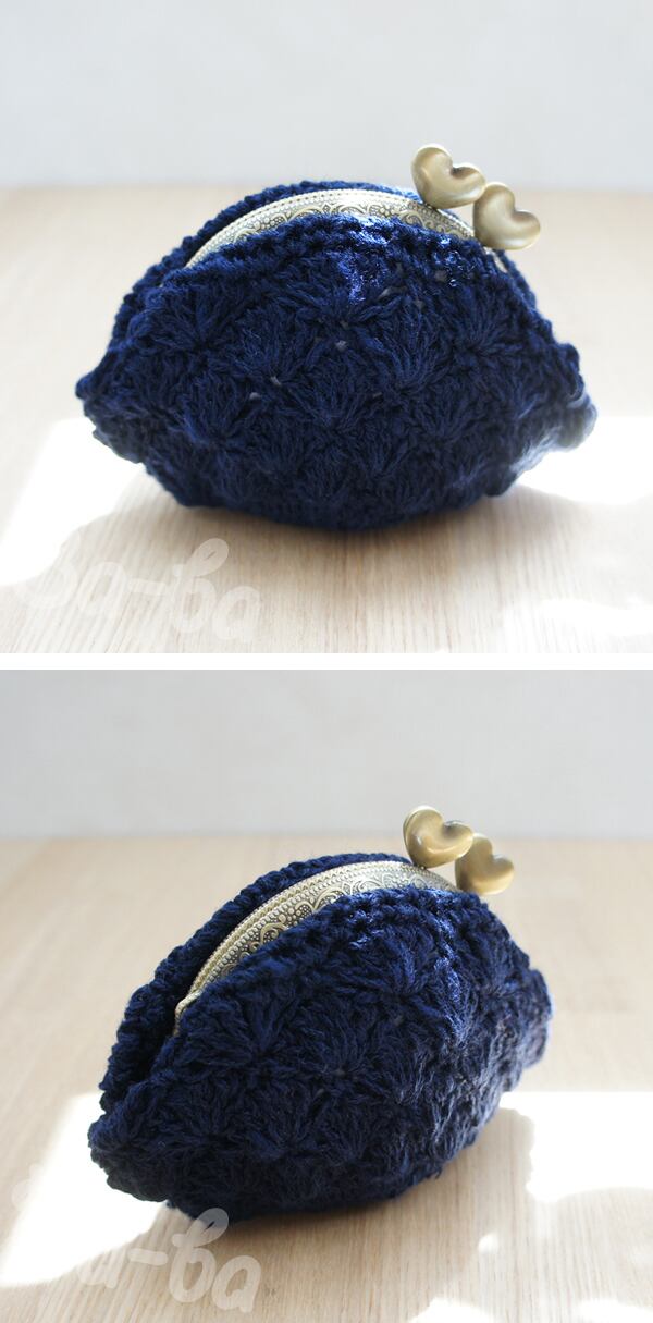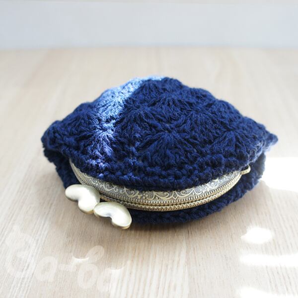 ばあば作♥松編みのがまぐち (inkblue・C961)