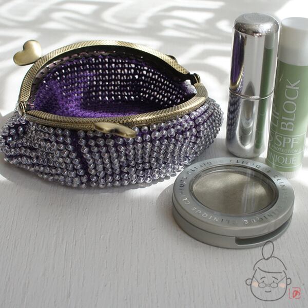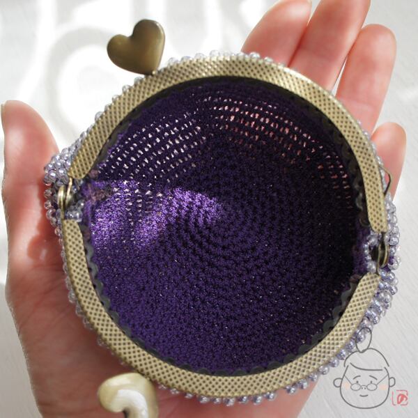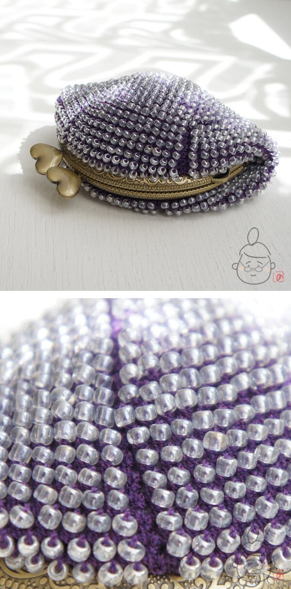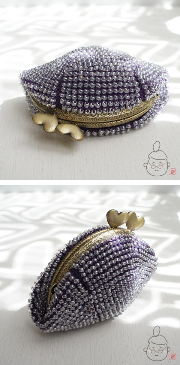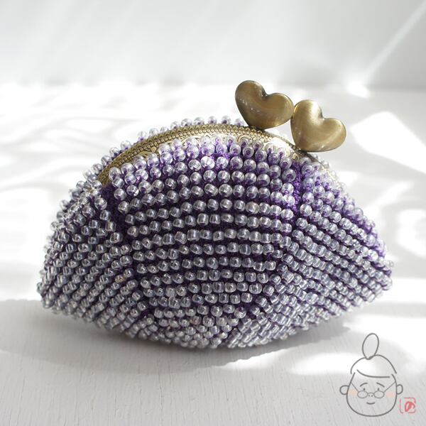 ばあば作♥総ガラスビーズのハートがま口 (amethyst・668)