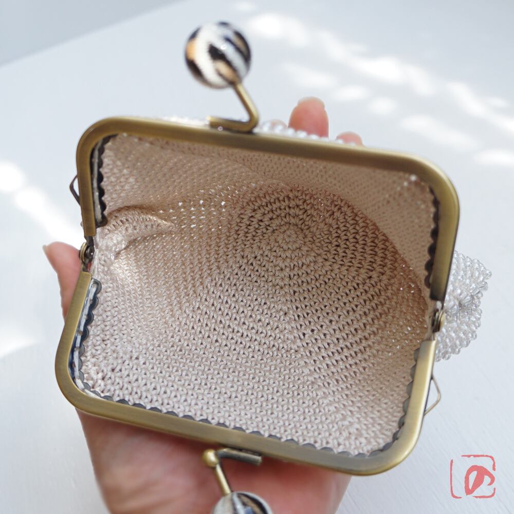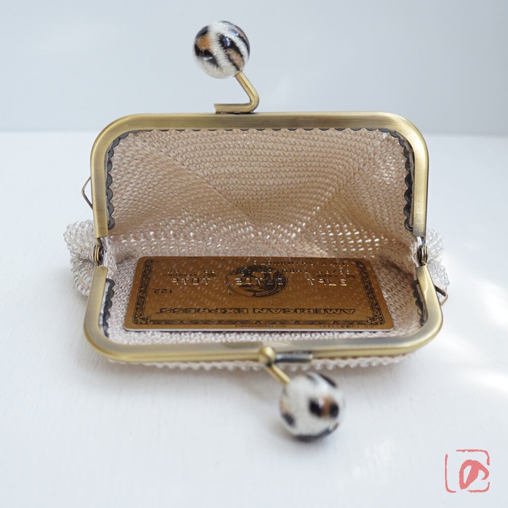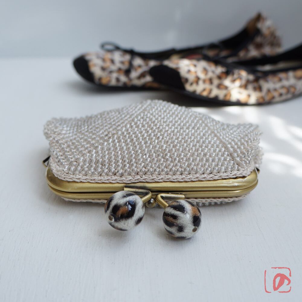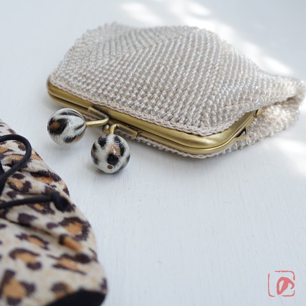 ばあば作、大きめ・総ガラスビーズのスクエアがま口(Leo・1783)