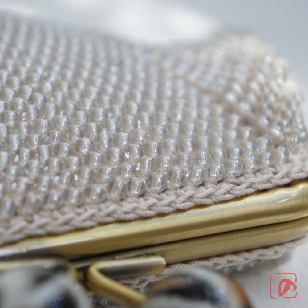 3mmのガラスビーズをひとつぶづつ、全面に編み込みました。