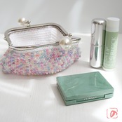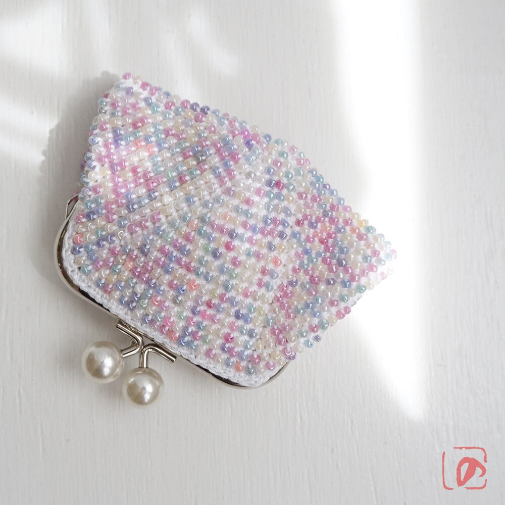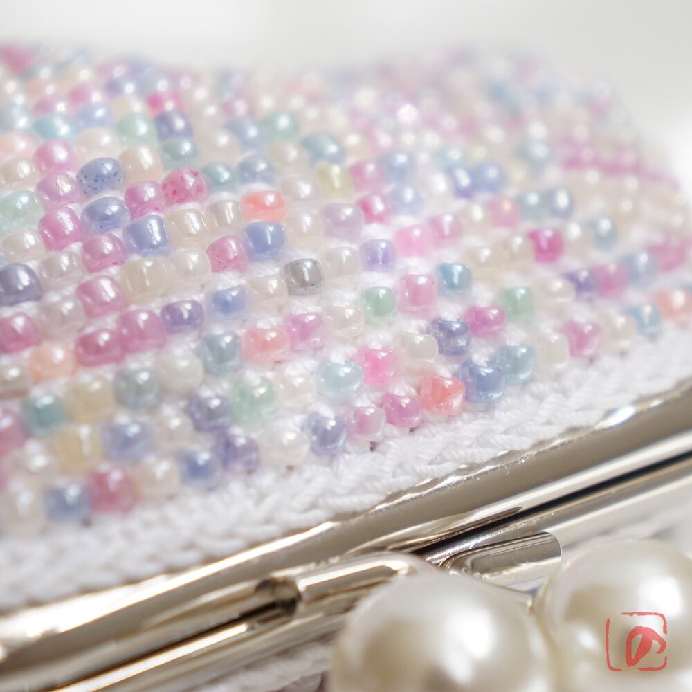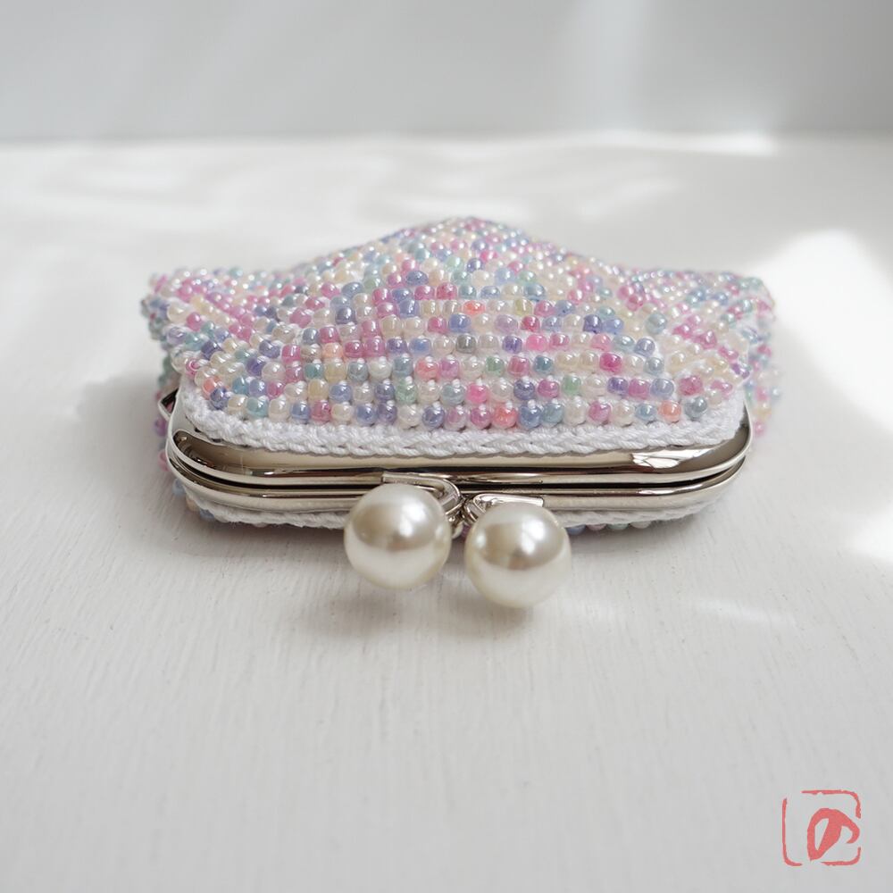 ばあば作☆総ガラスビーズのスクエアがま口(pastεl・1677)