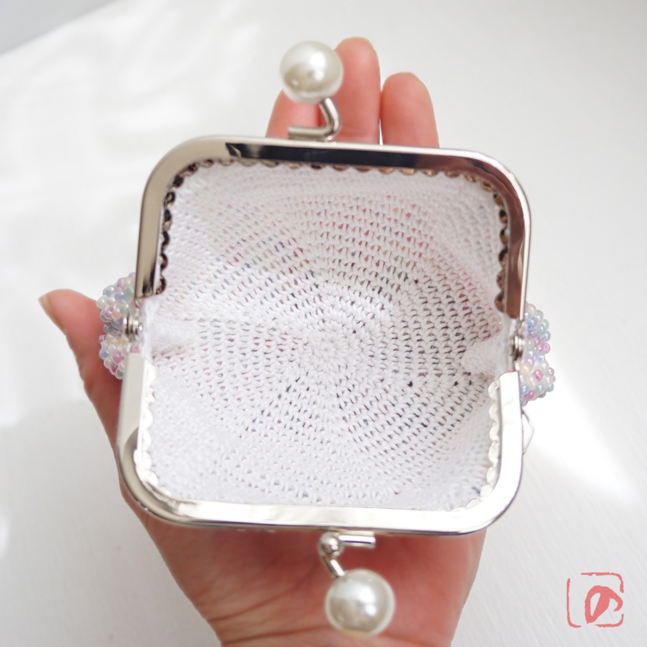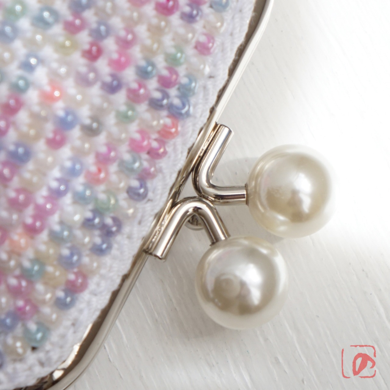 口金 : シルバー、プチパールのつまみ、8.5cm、角型、片カン