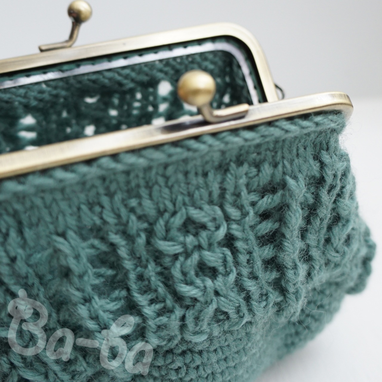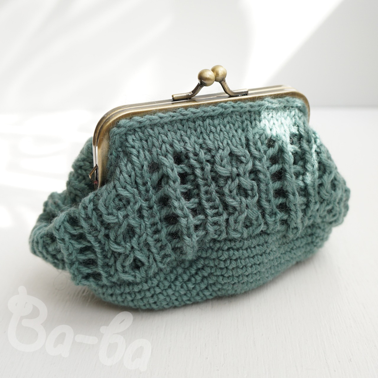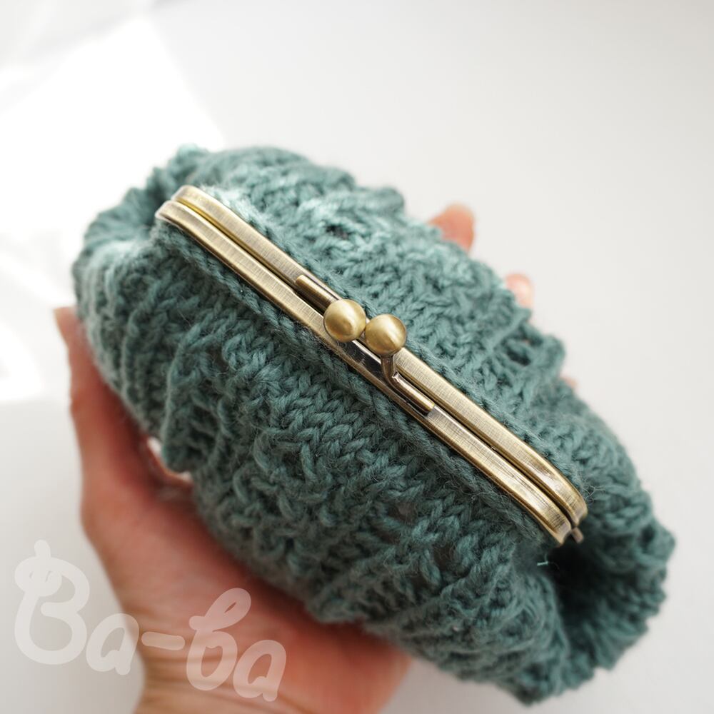 ふんわりと暖かい毛糸を透かし編みで編み上げ、がま口に仕上げました。