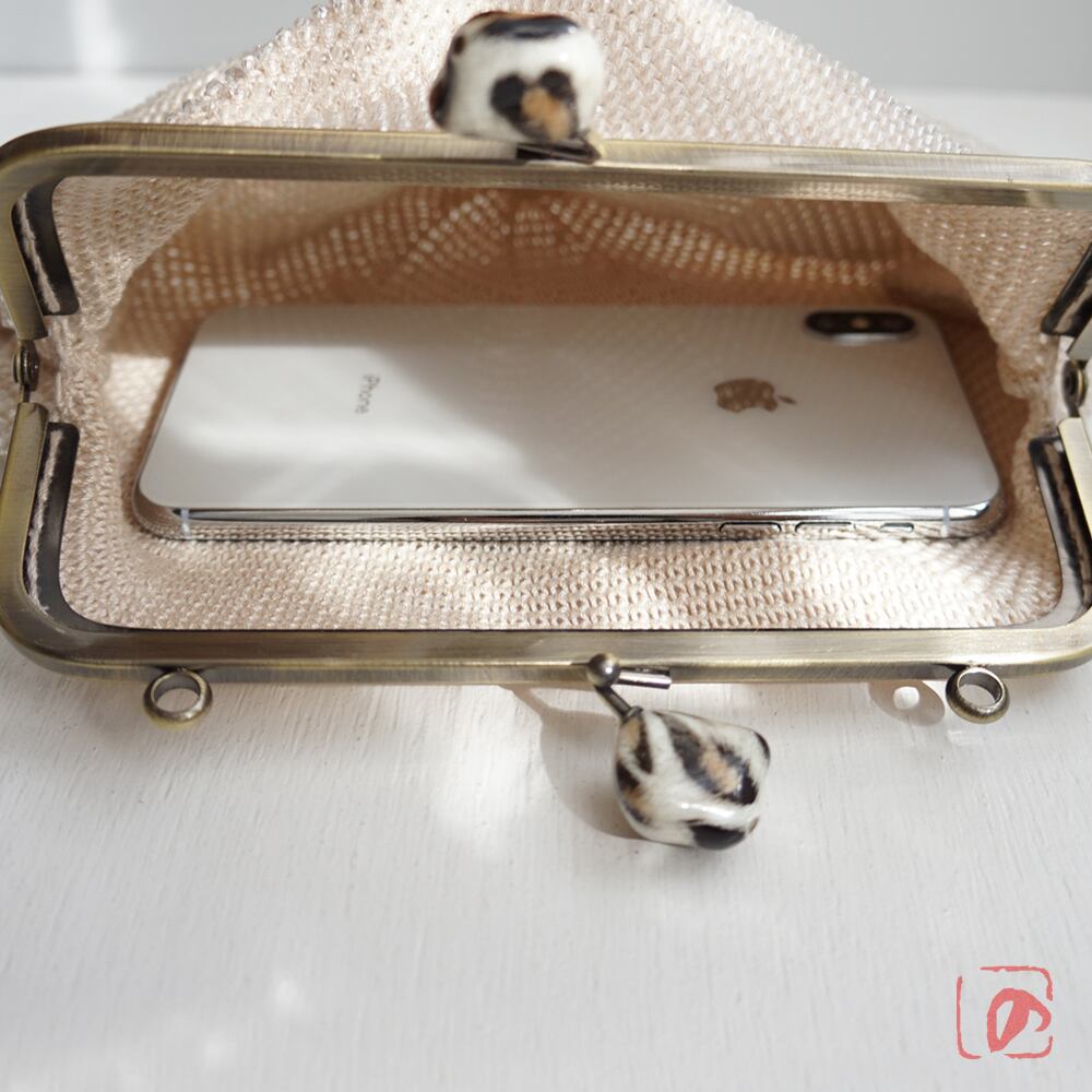 スマホ、12.5cmがま口もすっぽり入る大きさに出来上がりました。
