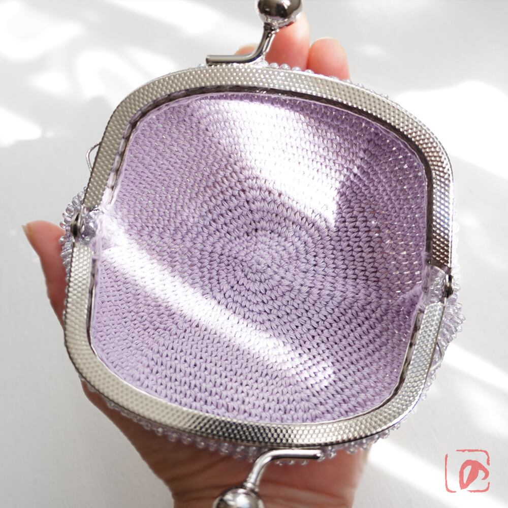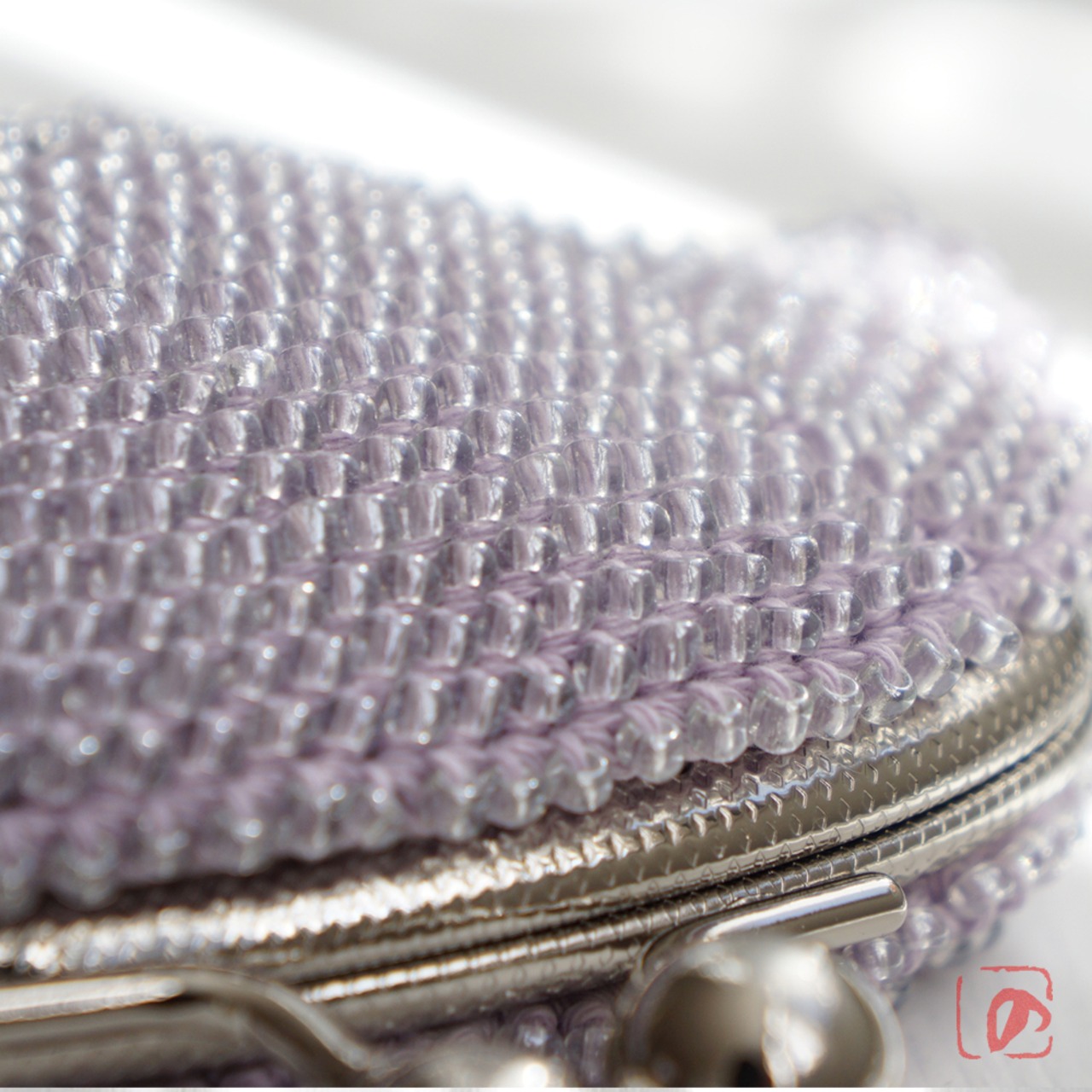 3mmのガラスビーズをひとつぶづつ全面に編み込んだ、上質ながま口です。