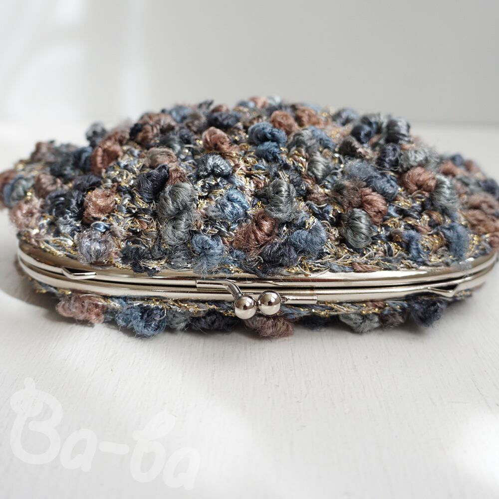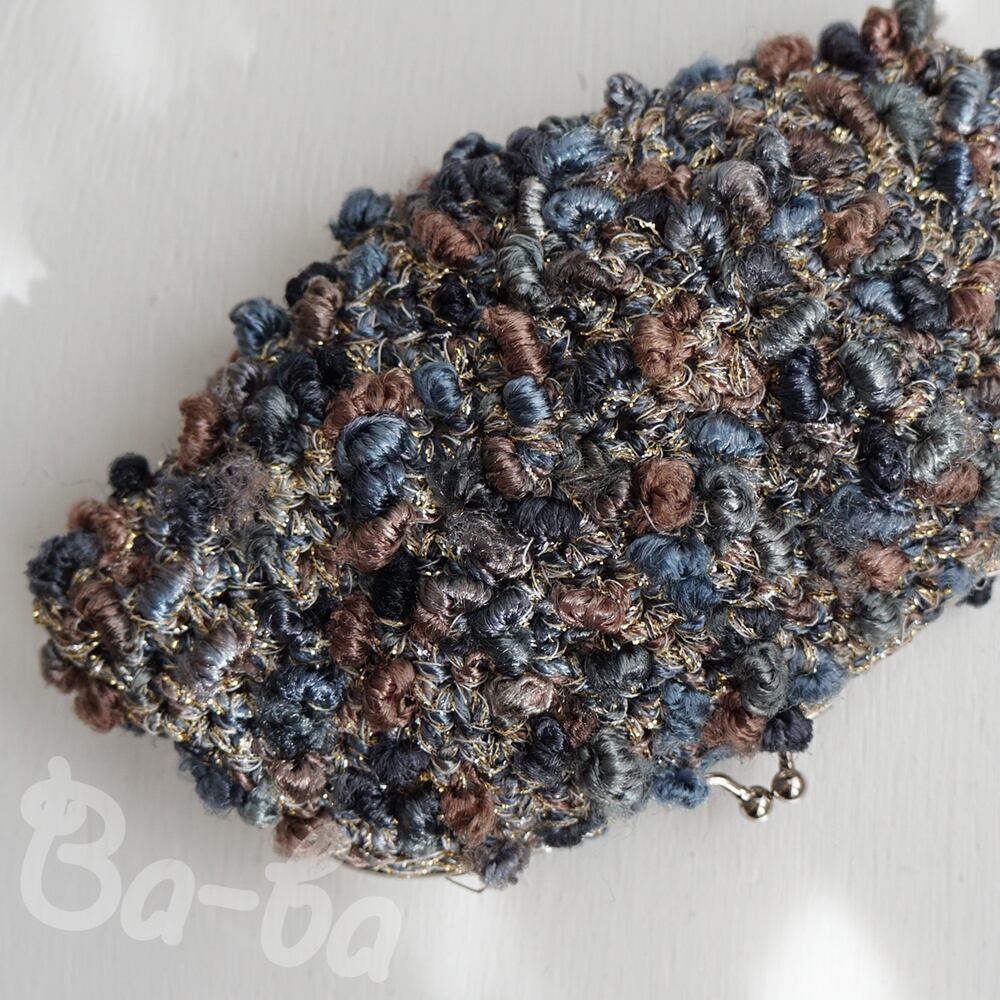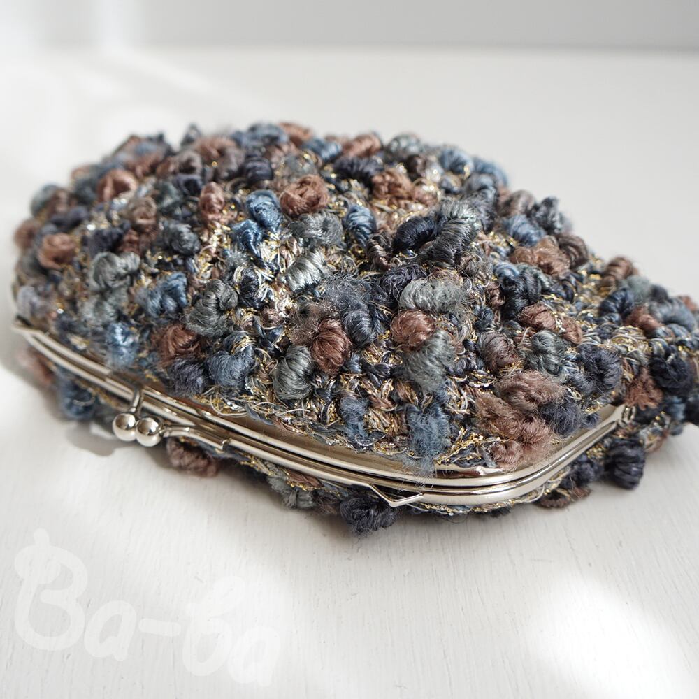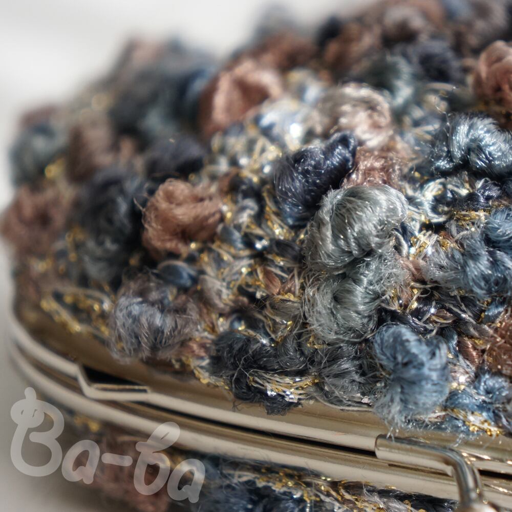 糸 : フランス製混紡毛糸(茶、青系ネップ及び金銀ラメ)