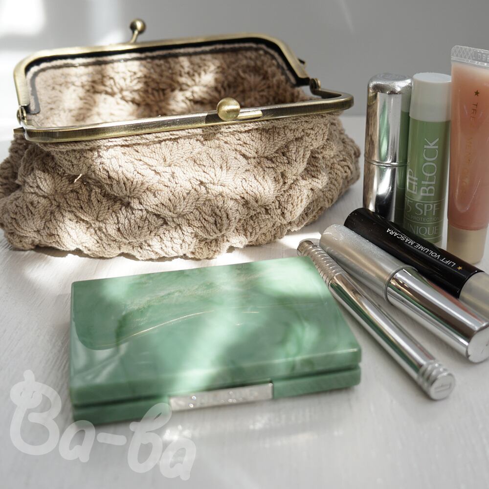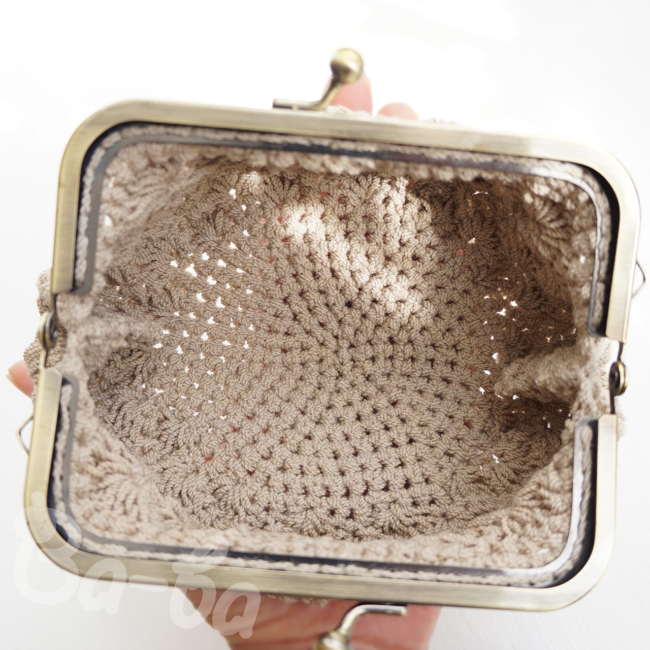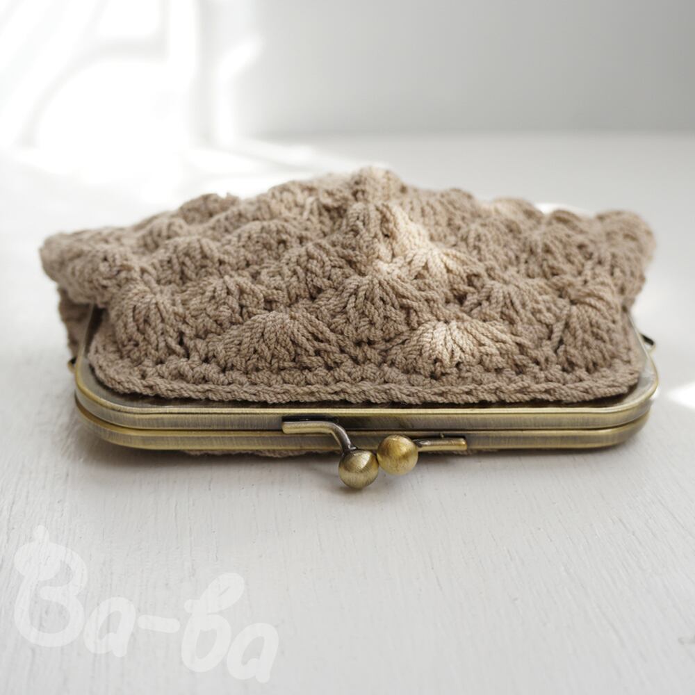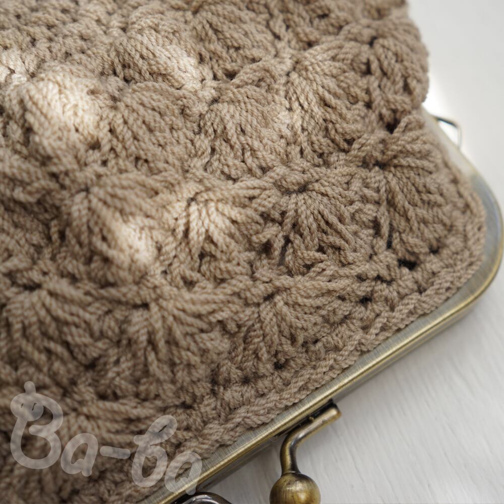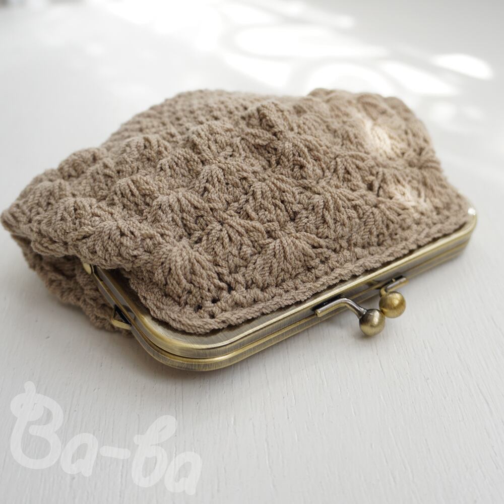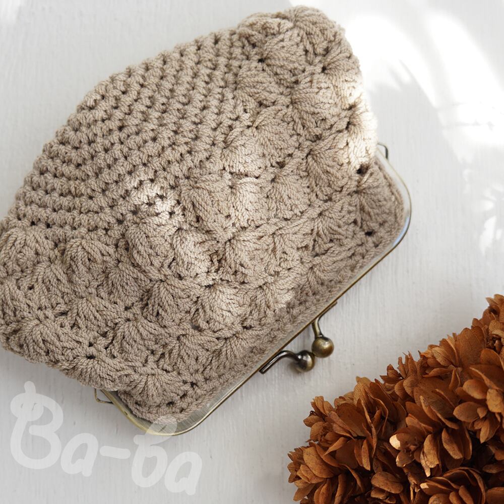 ばあば作♪松編みのさらに大きめがまぐちポーチ(désert*・C1621)