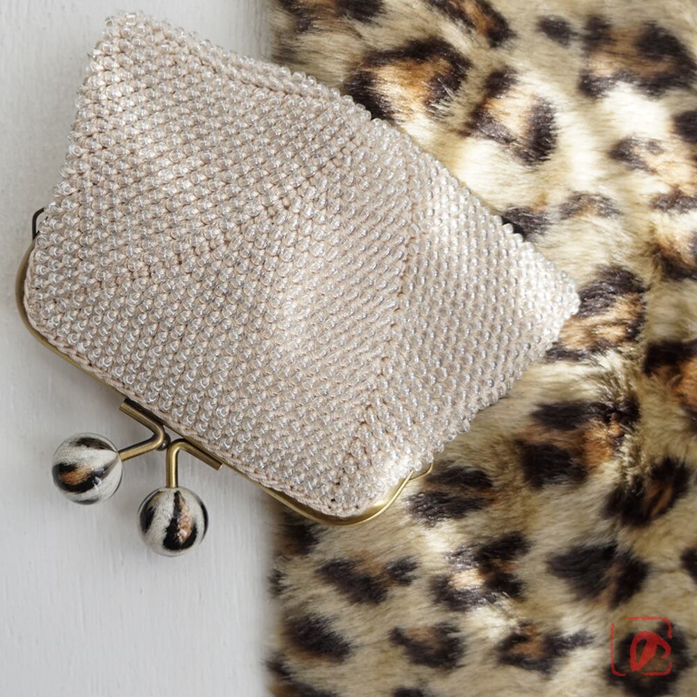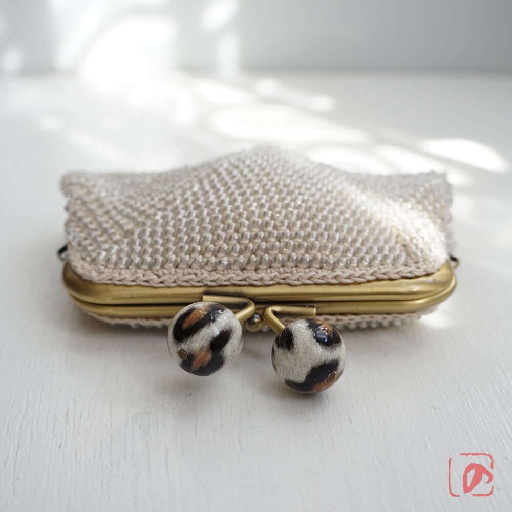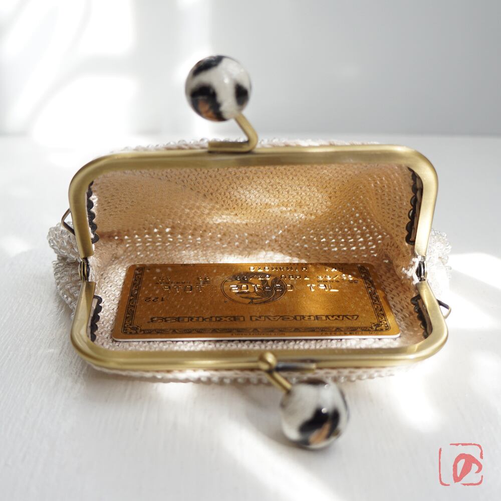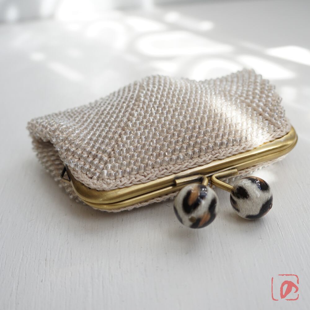 ばあば作、大きめ・総ガラスビーズのスクエアがま口(Leo*・1805)