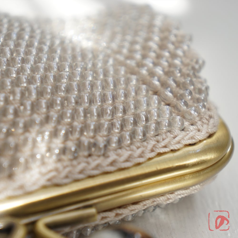 3mmのガラスビーズをひとつぶづつ、全面に編み込みました。