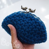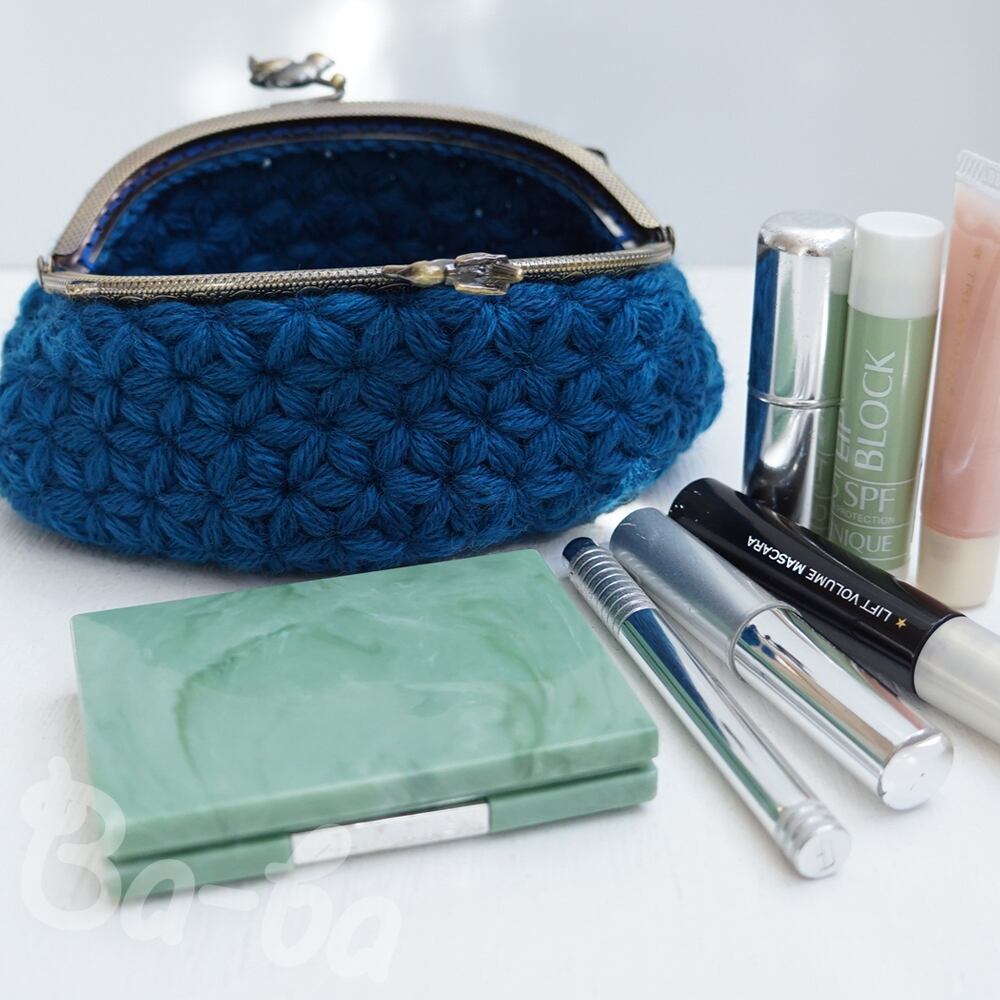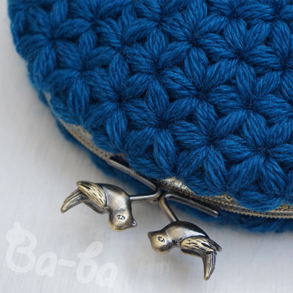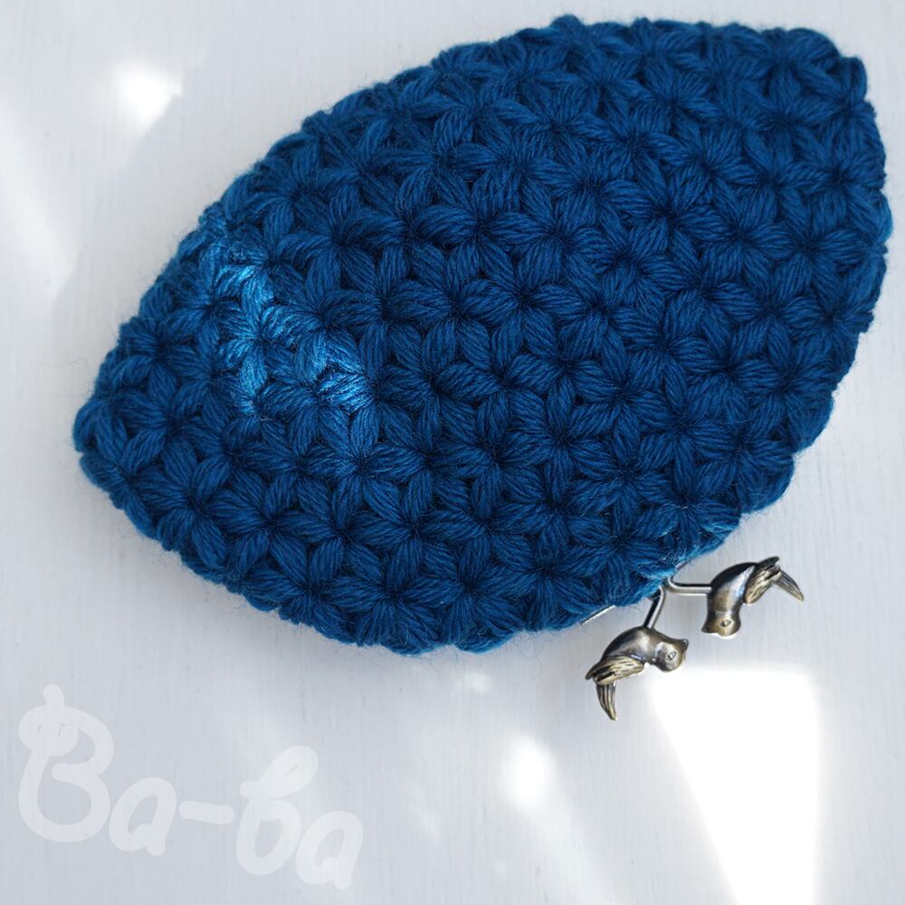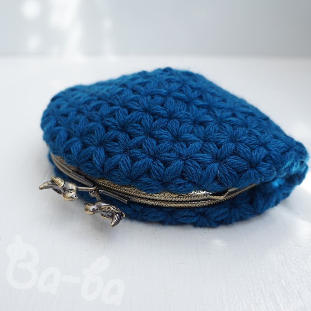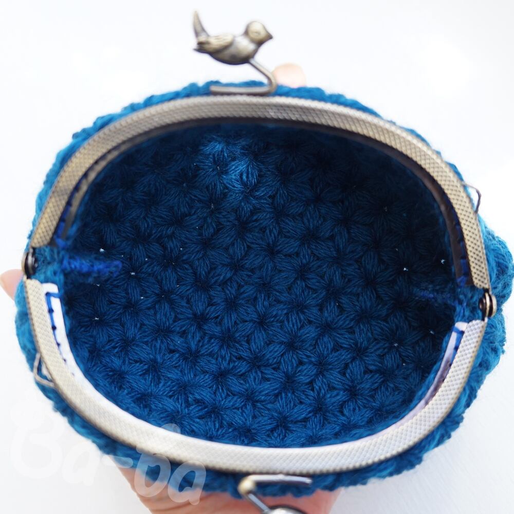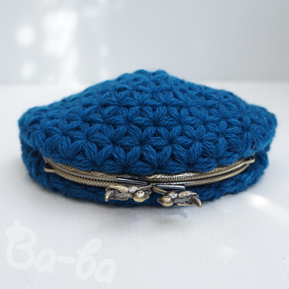 ばあば作♩さらに大きめリフ編みのがま口ポーチ(Peacock Blue・C1619)