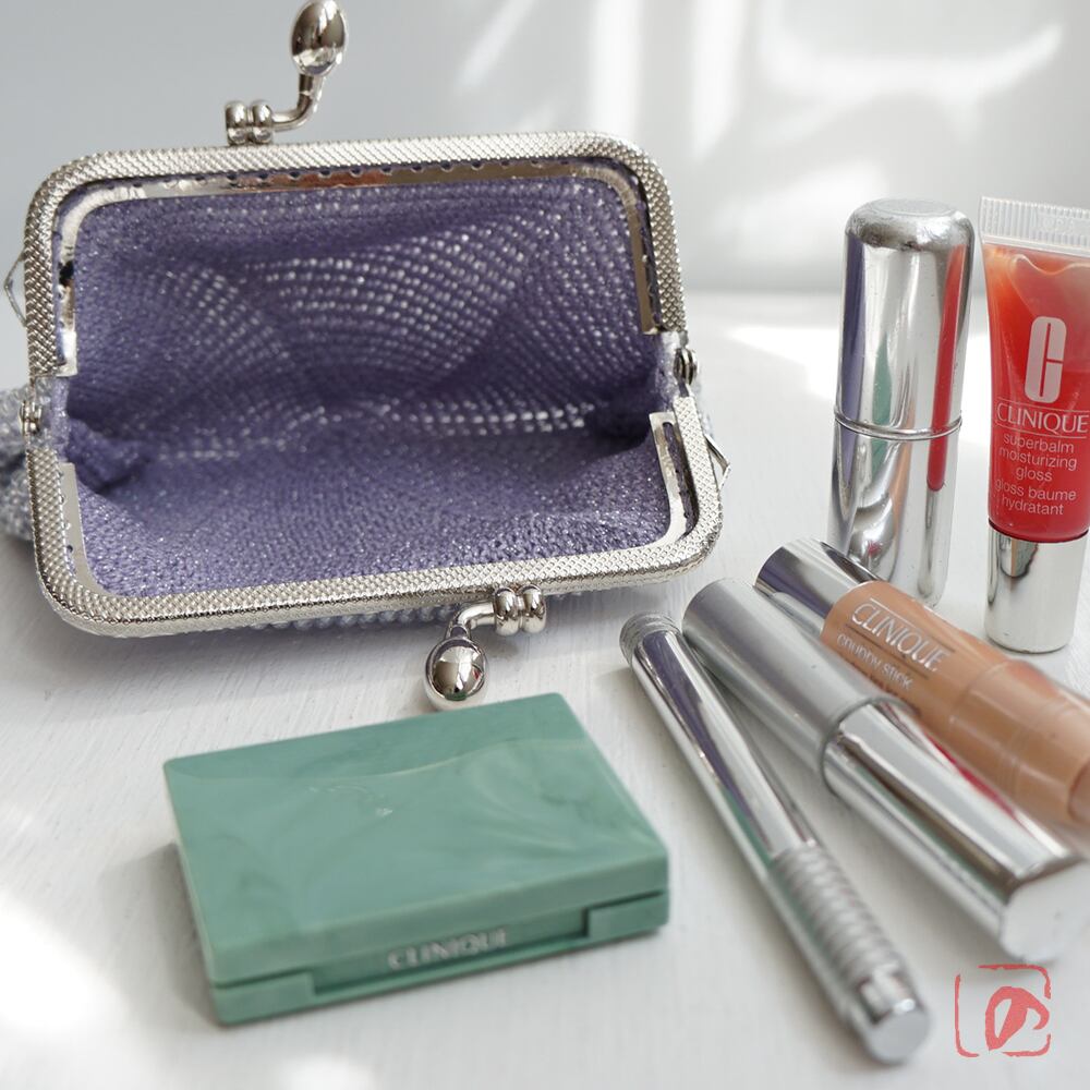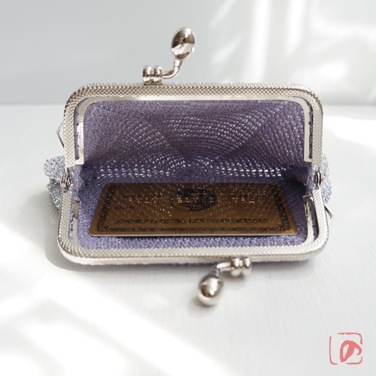 長玉つまみは開閉しやすく、10.5cm角型口金の作品は四角い物の収納に適しています。