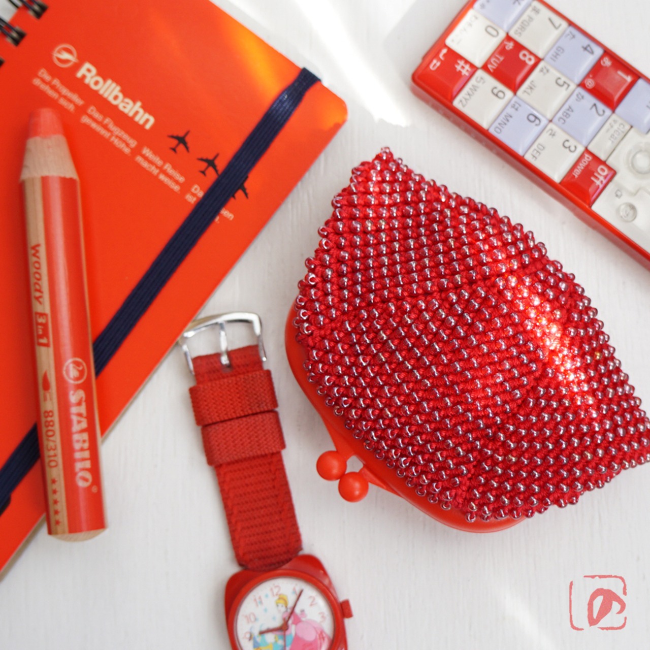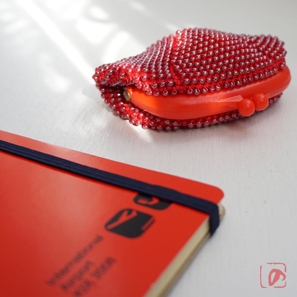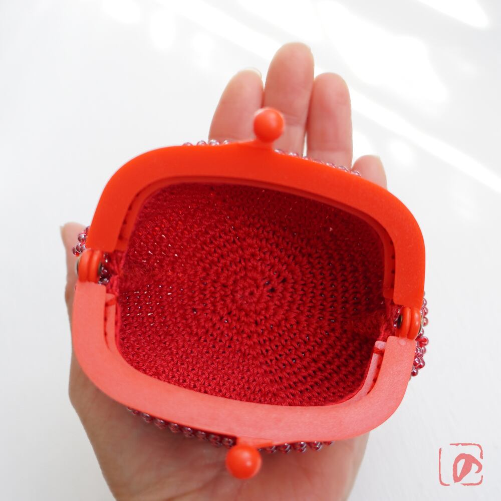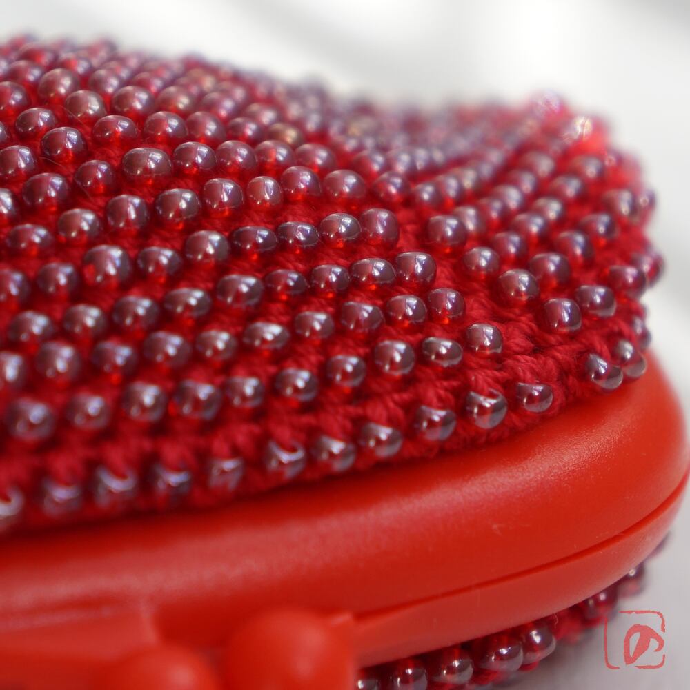 3mmガラスビーズをひとつぶづつ全面に編み込んだがま口です。