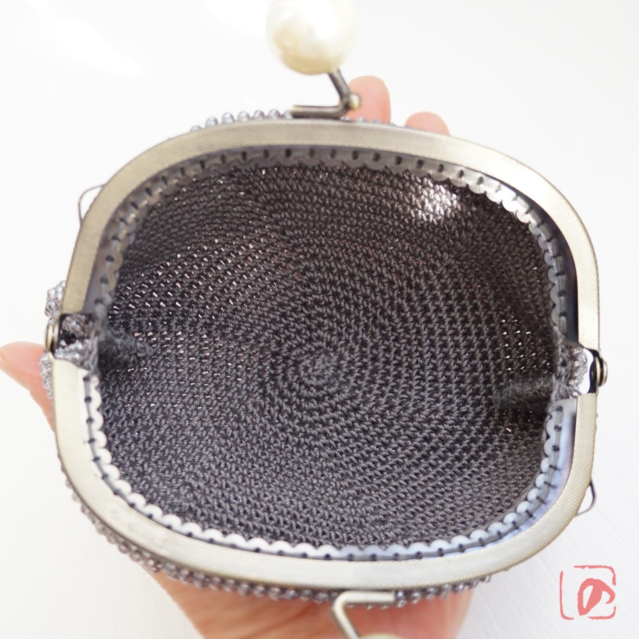 パールつまみの口金は12.5cmくし型を使用し収納力バツグン!なんでもいろいろ入ります。