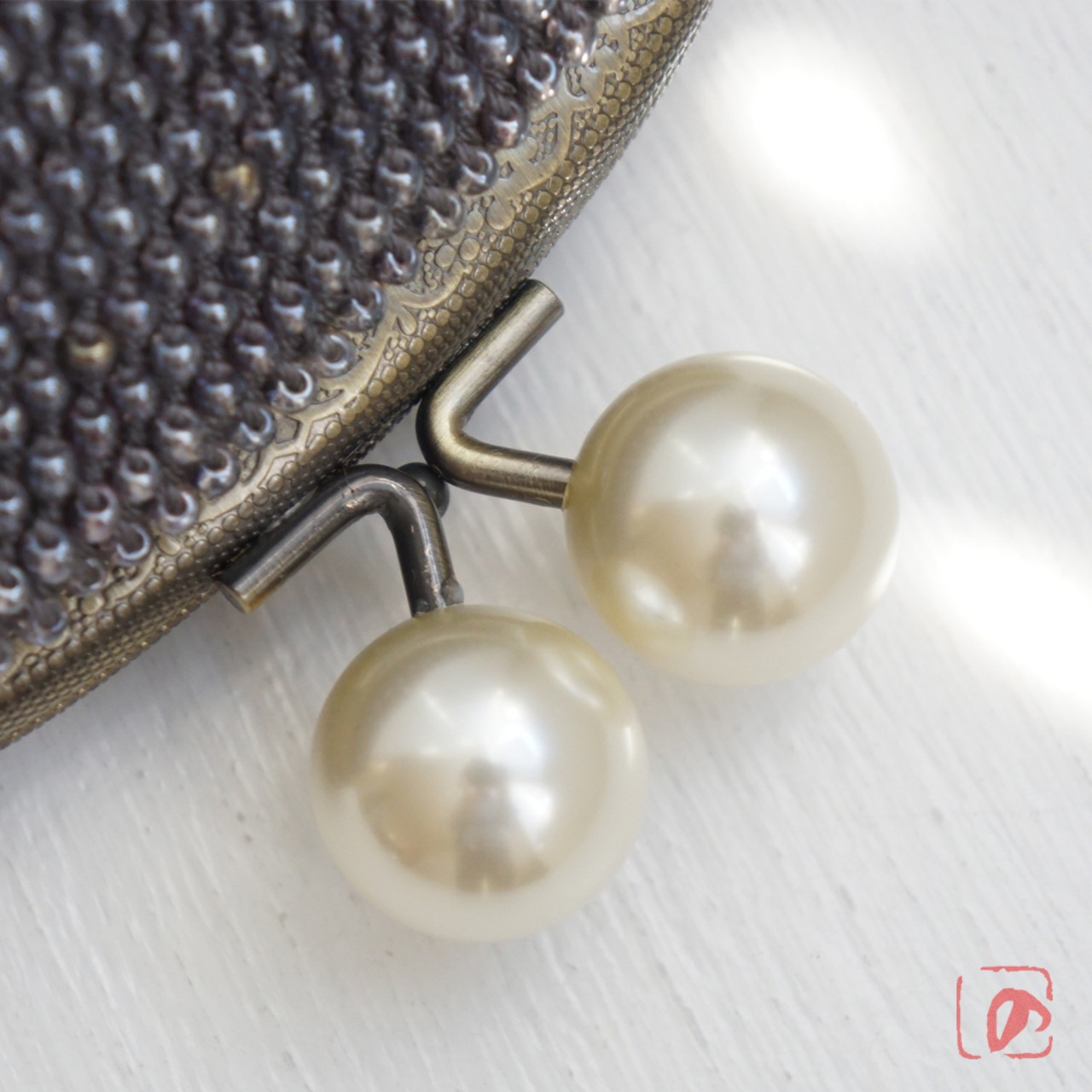 口金 : アンティークゴールド、2cmパールつまみ、12.5cm、くし型、両カン