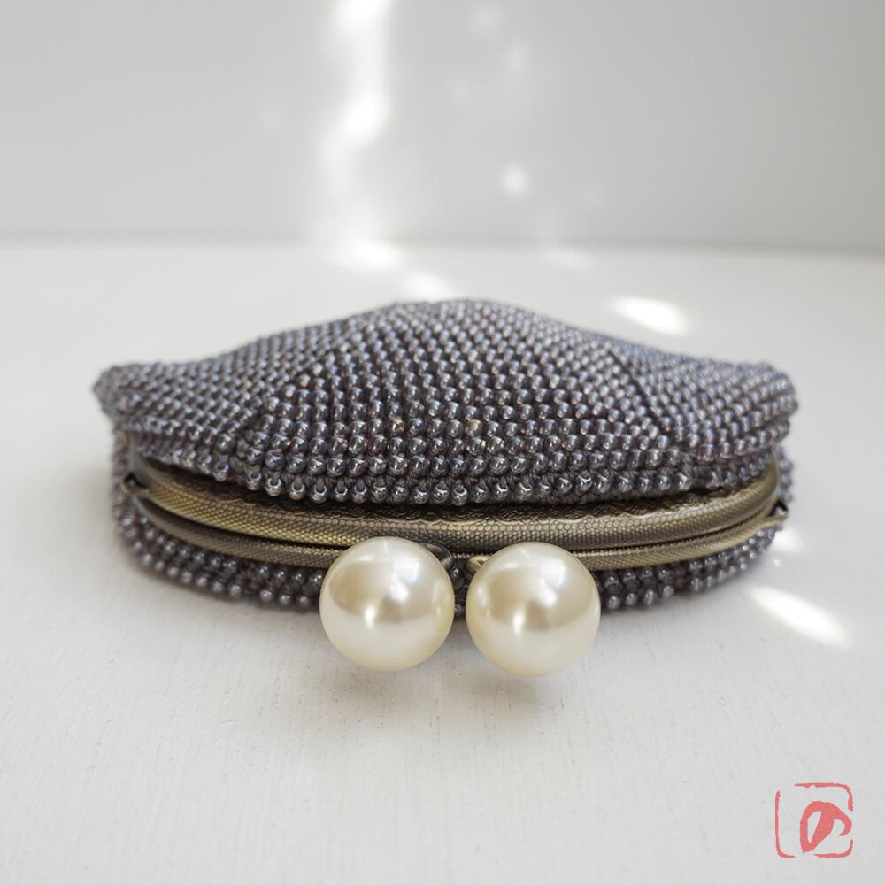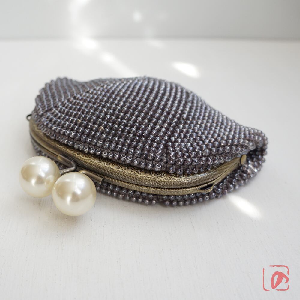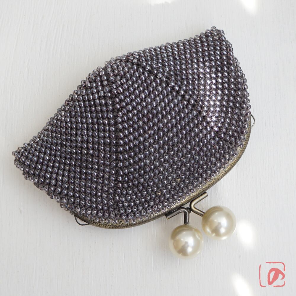 つやつやグレーの3mmビーズをひとつぶづつ、全面に編み込みました。