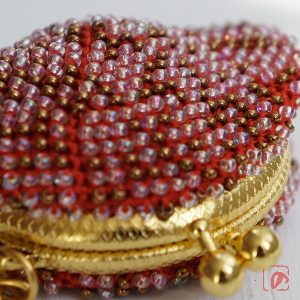 2mmのシードビーズをひとつぶづつ全面に編み込んだ、上質ながま口です。