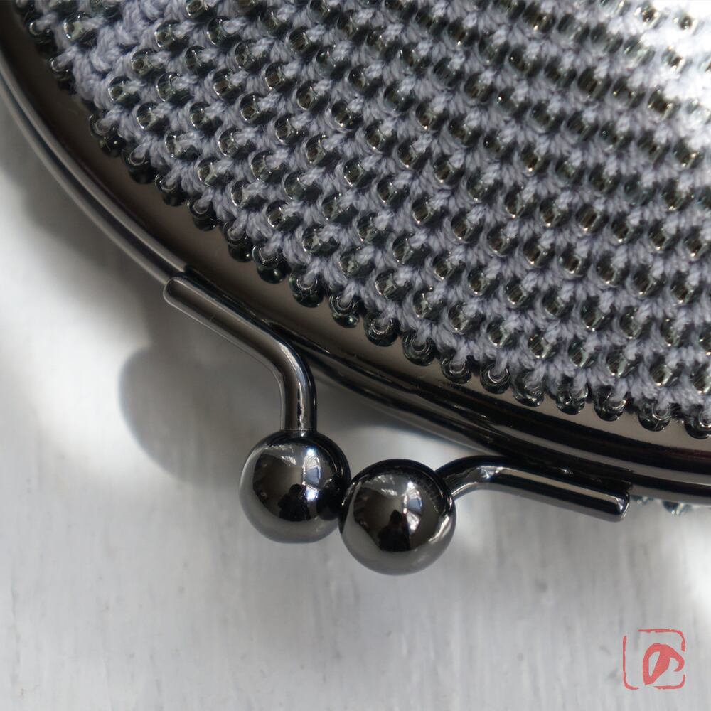 口金 : 黒ニッケル、丸つまみ、9.9cm、くし型、片カン