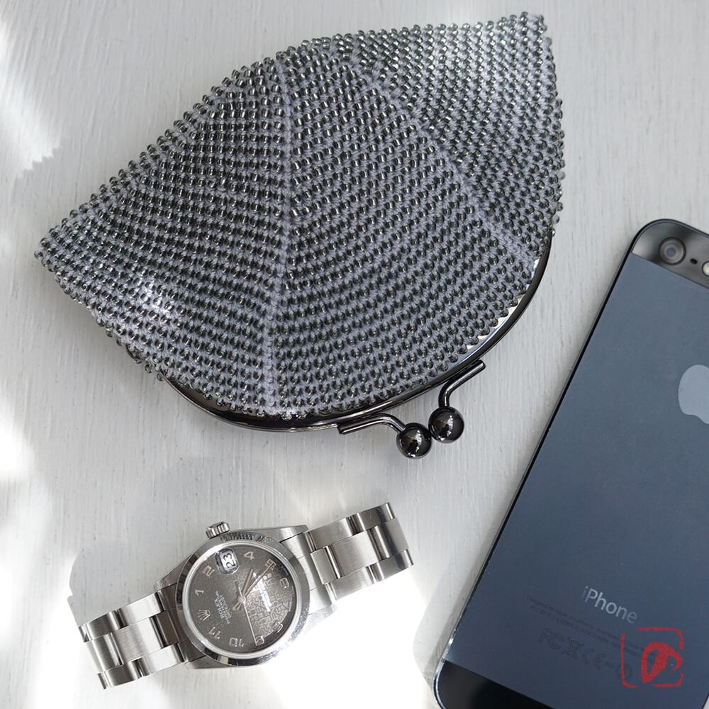 2mmの日本製シードビーズを全面に編み込んだ、上質ながま口です。