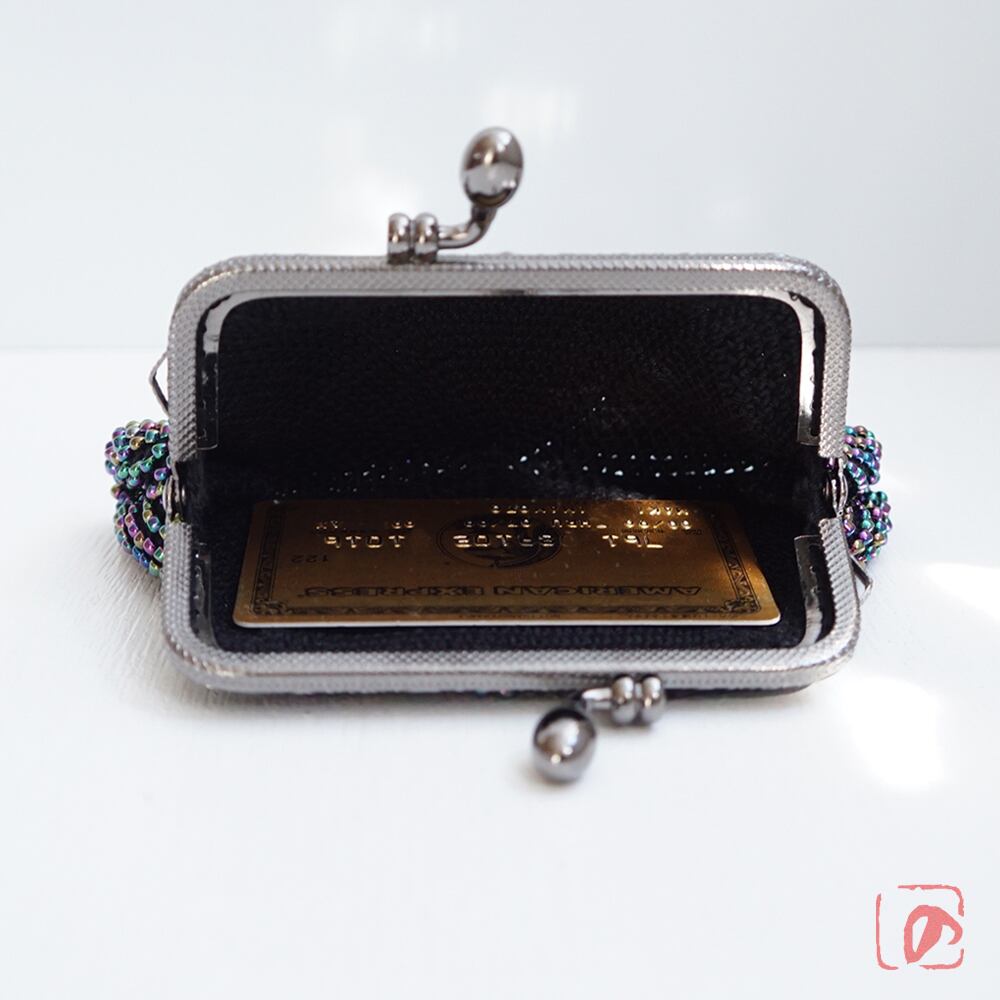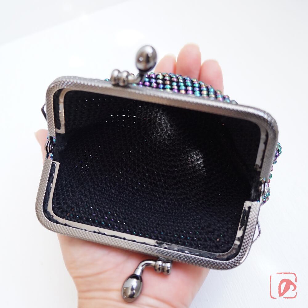 長玉つまみは開閉しやすく、10.5cm角型口金の作品は四角い物の収納に適しています。