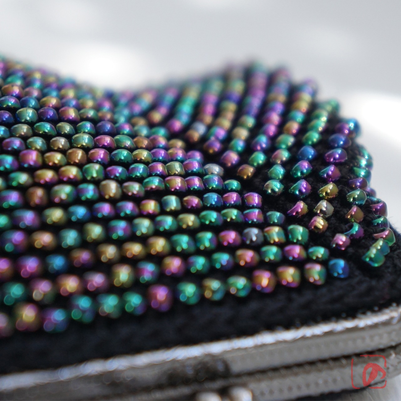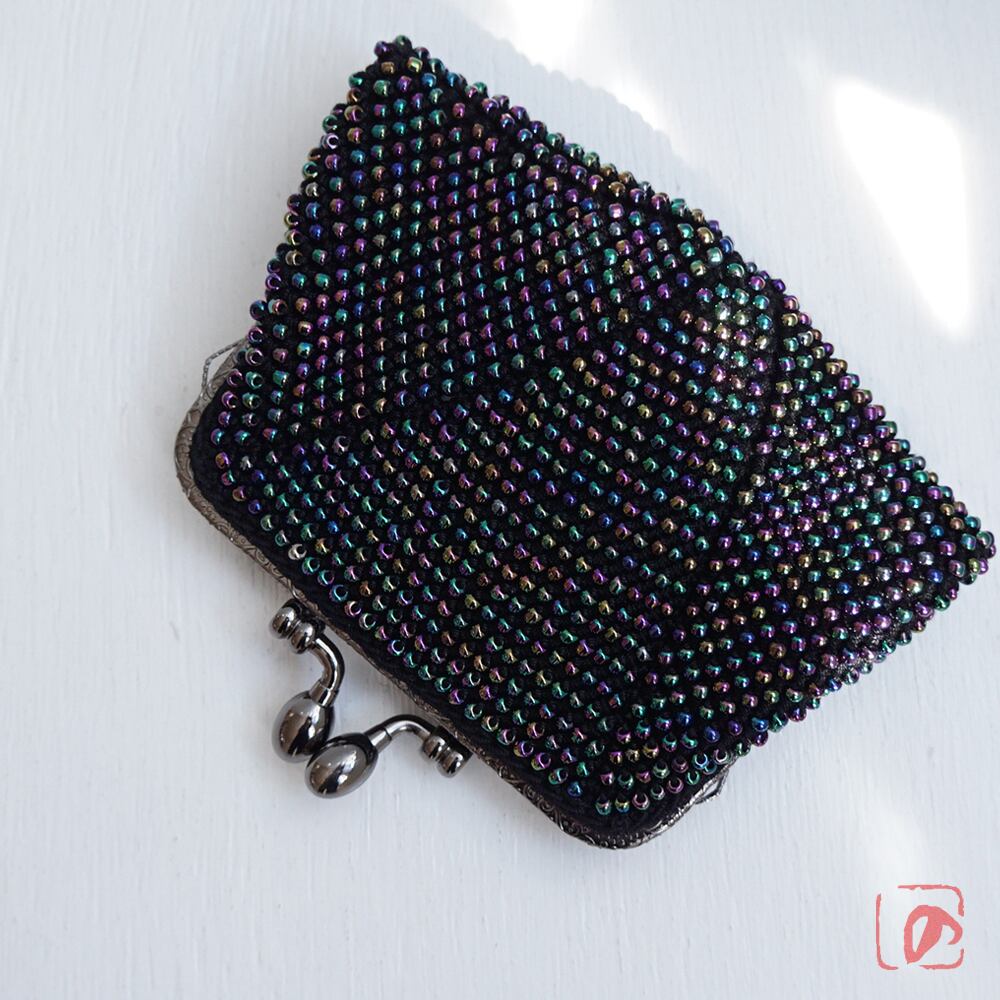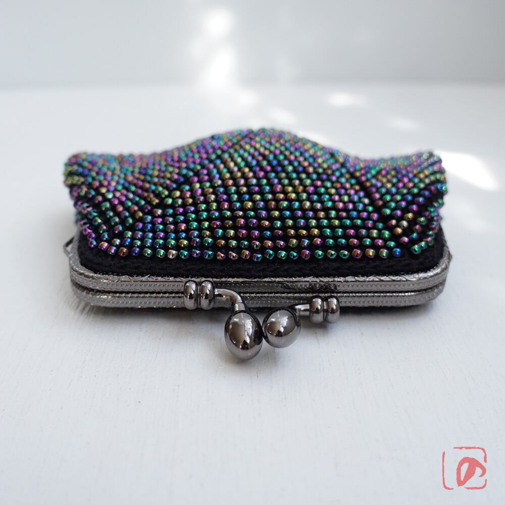 ばあば作☆大きめ・総ガラスビーズのスクエアがま口(Regenbogen・1819)