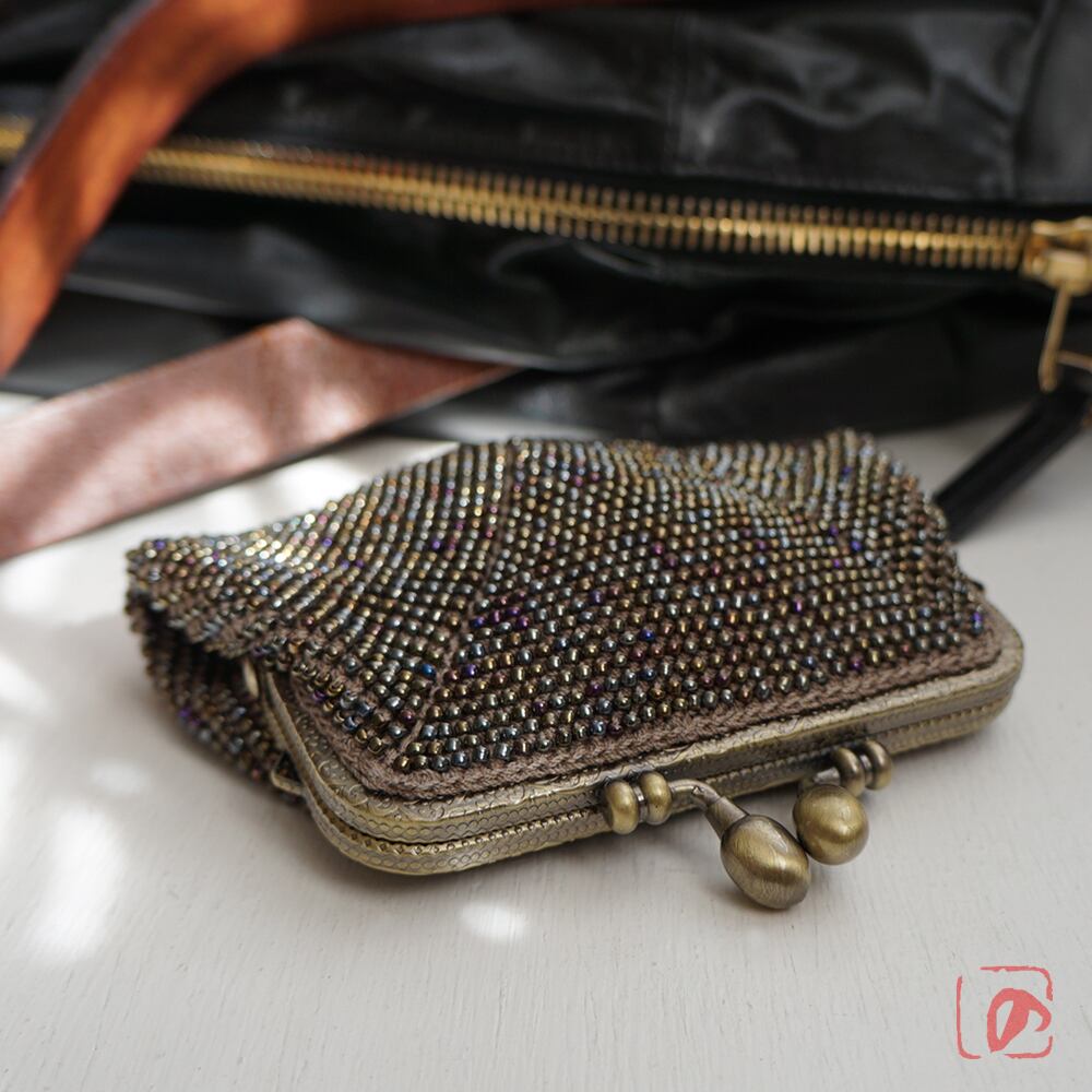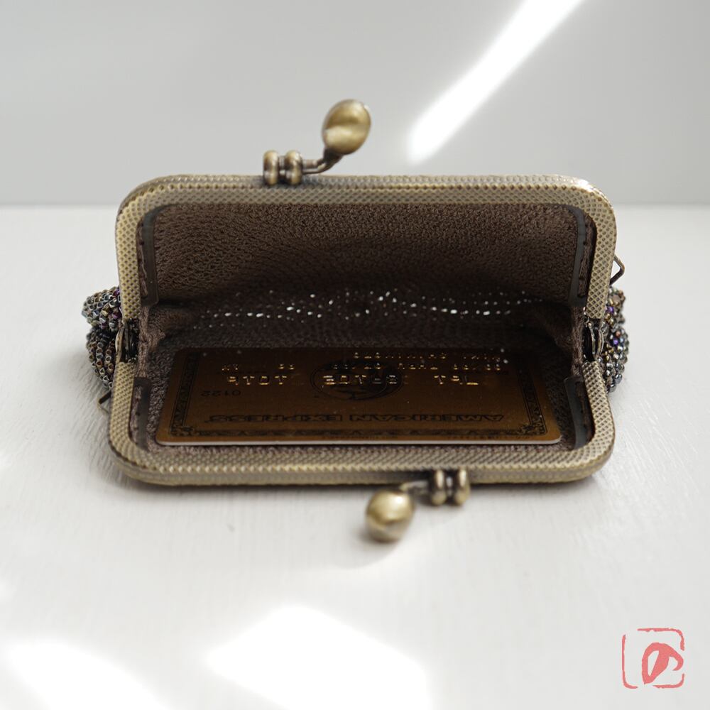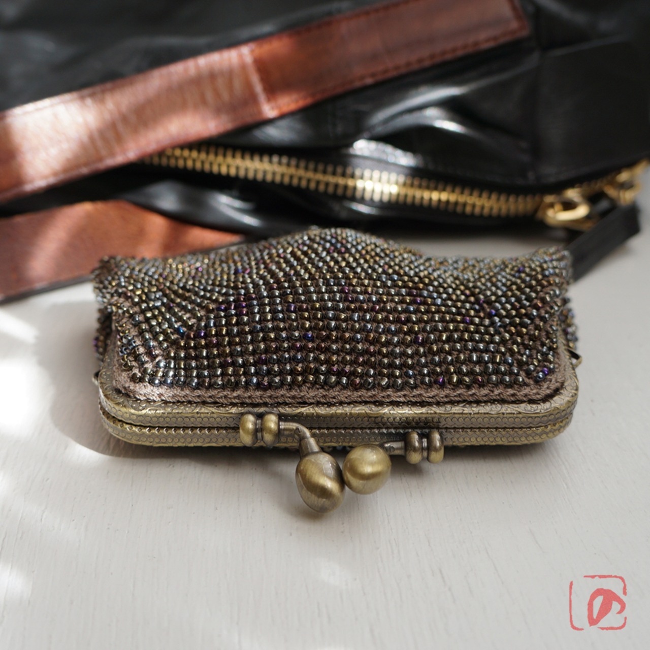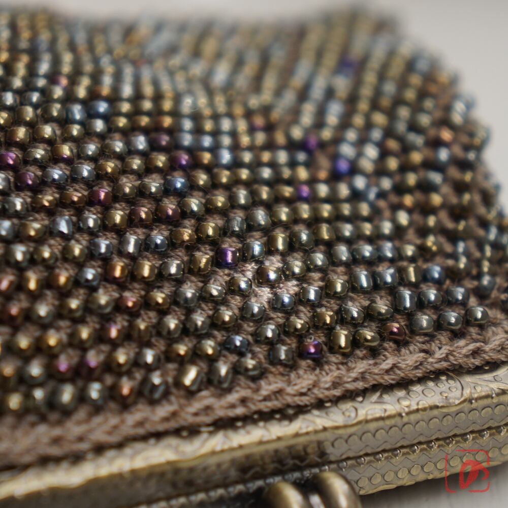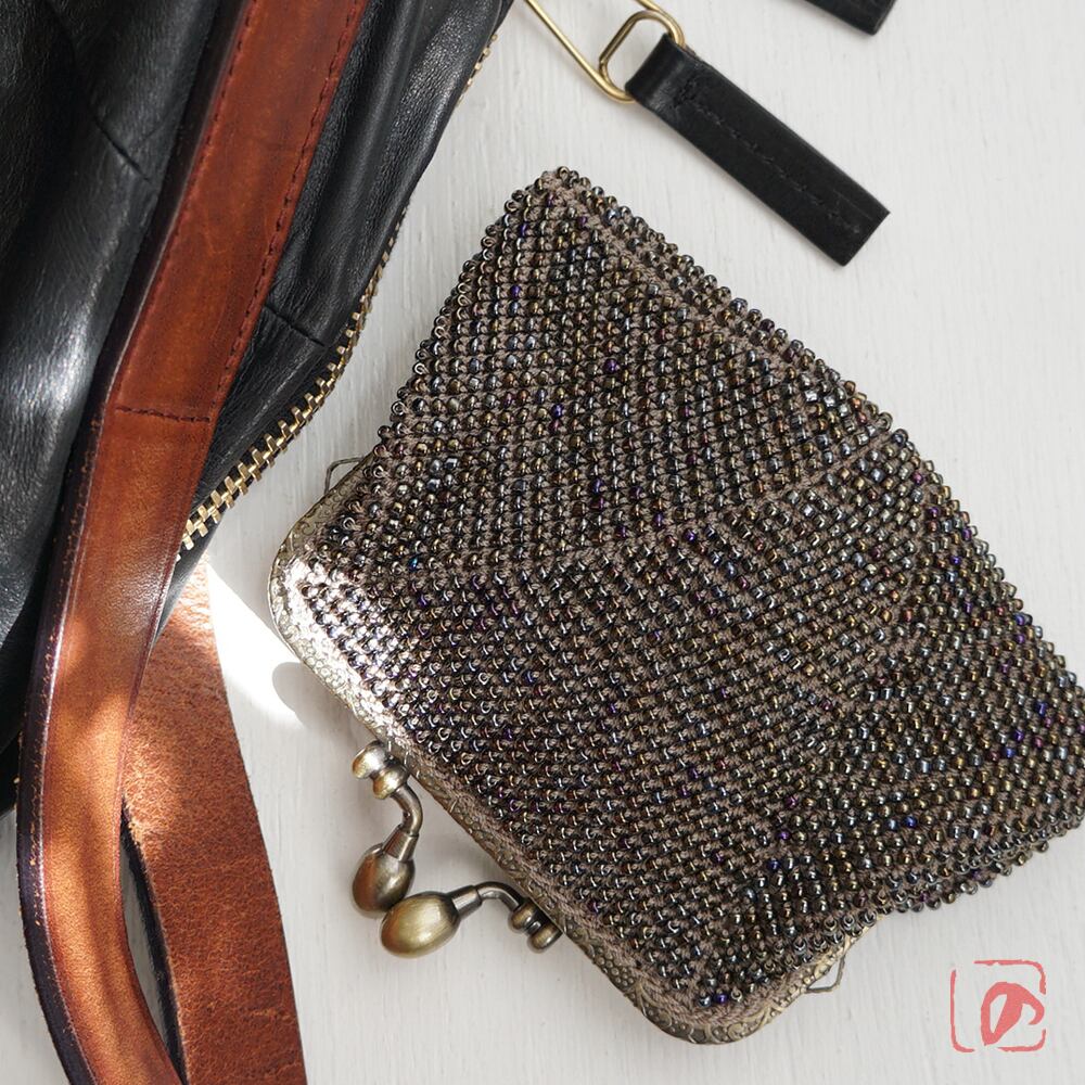 ばあばが2mmのシードビーズをひとつぶづつ全面に編み込んで仕上げた、上質ながま口です。