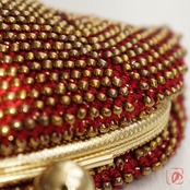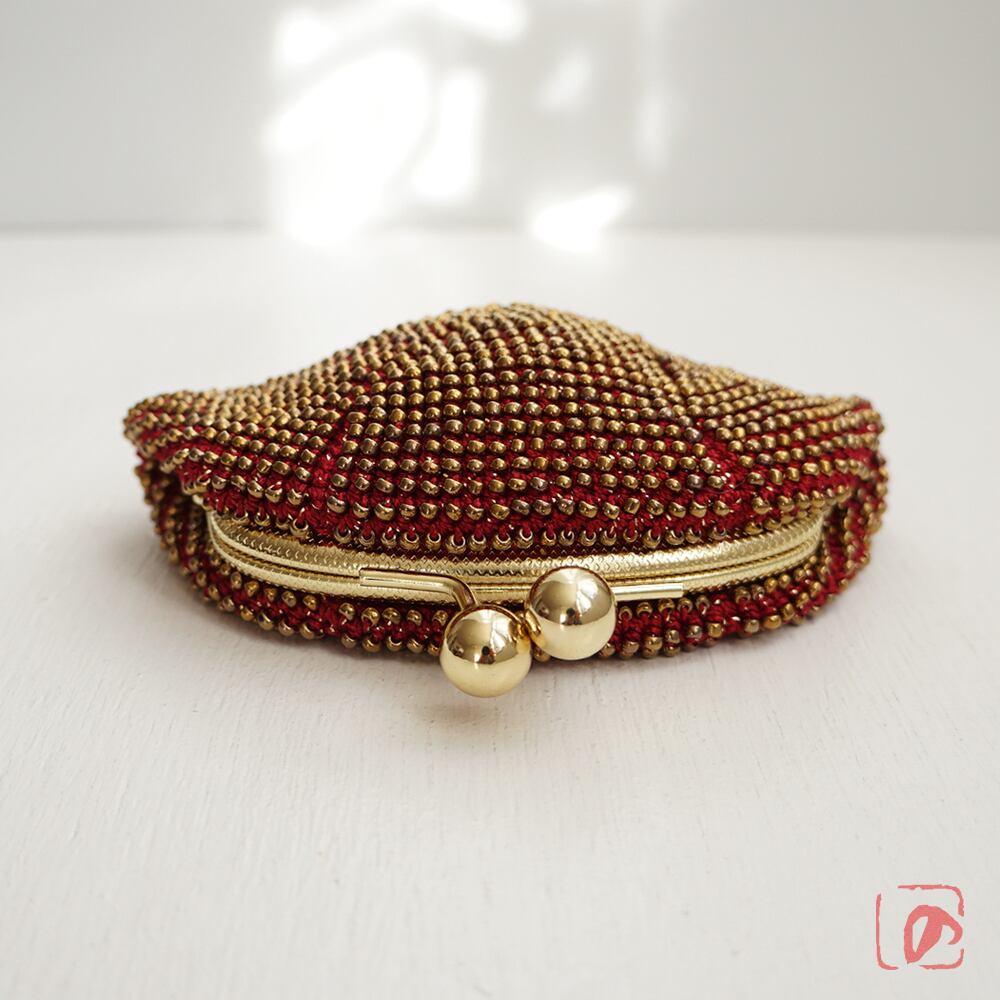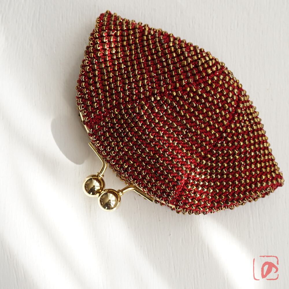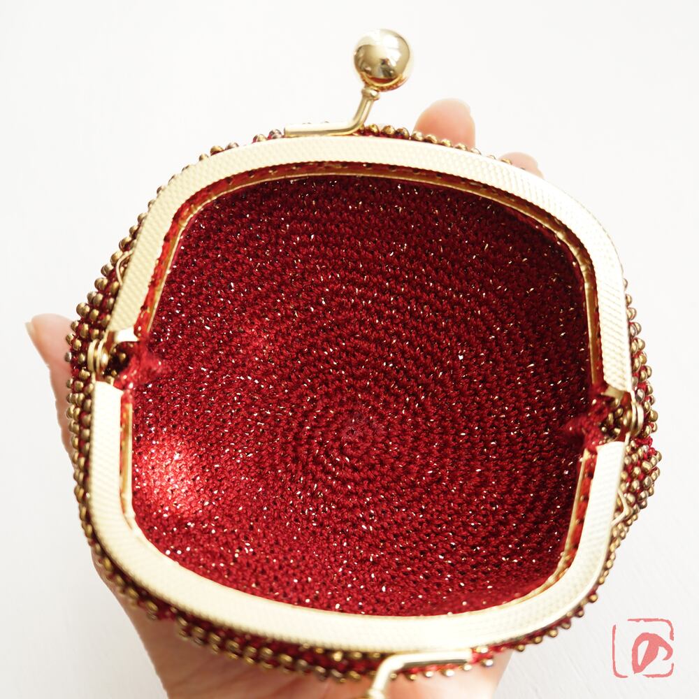 ゴールドラメ糸にゴールドの口金、ギラッと美しい編地です。
