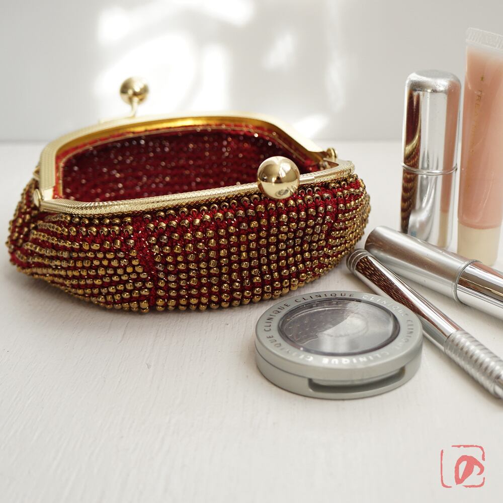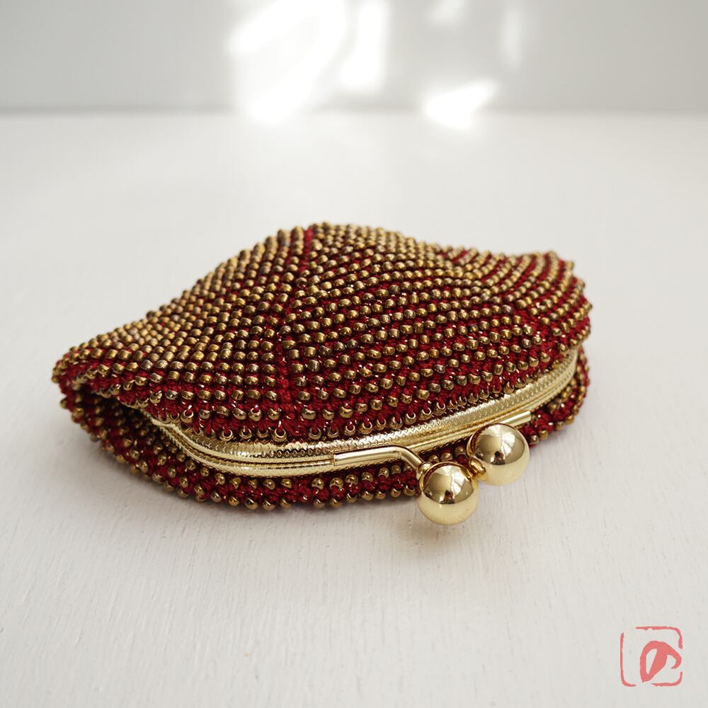 ばあば作♪ガラスビーズの大きめがま口(Maroon・1838)