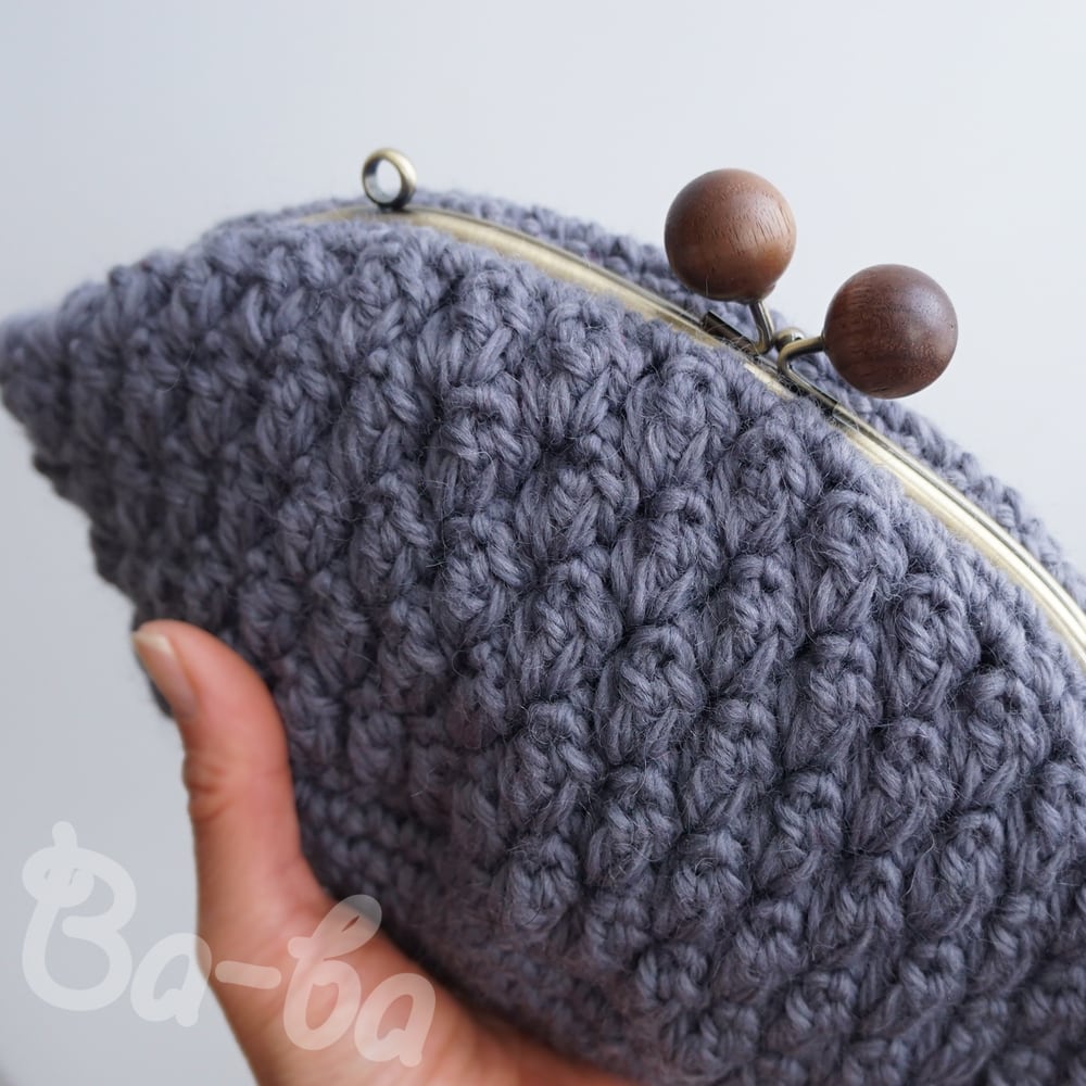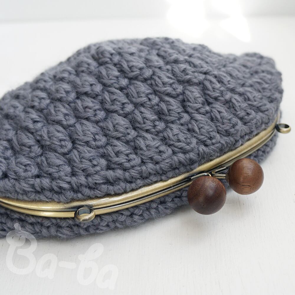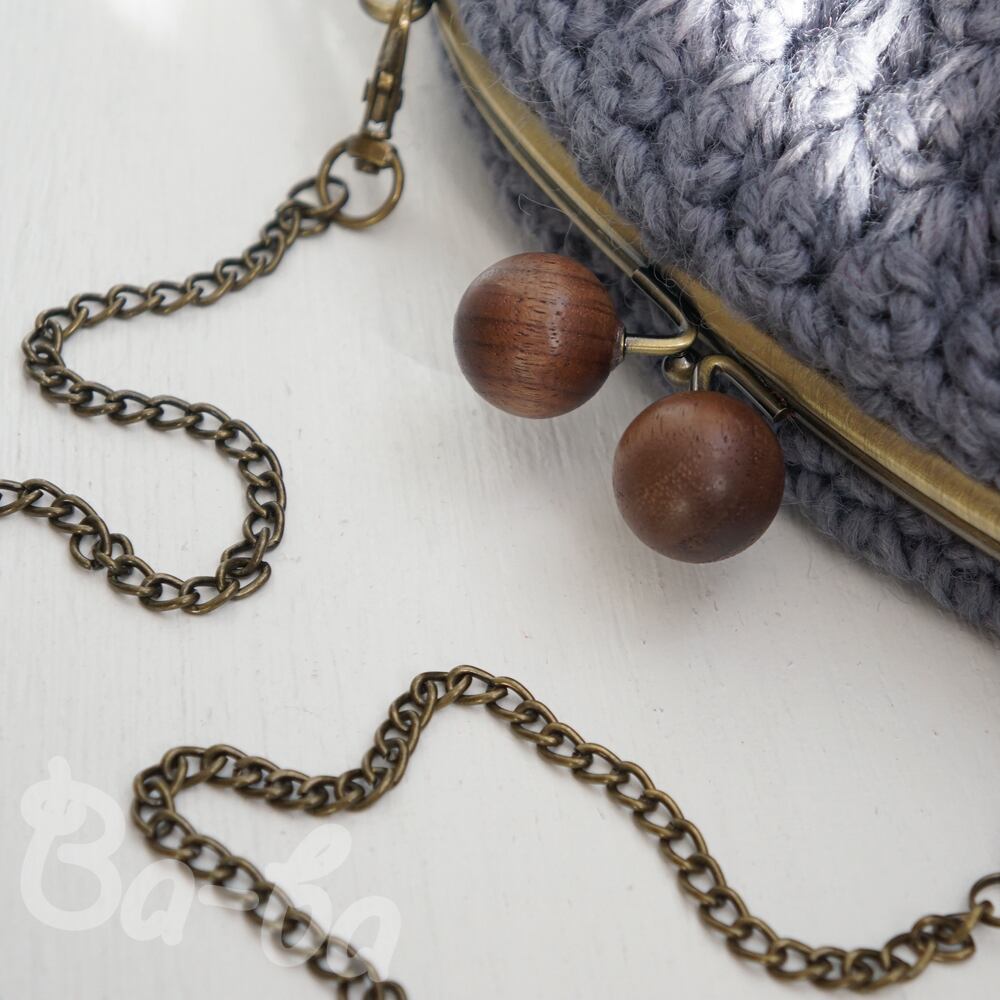ウッドつまみ ✖ ボリュームたっぷりパプコーン編みのほんわかプチバッグ。