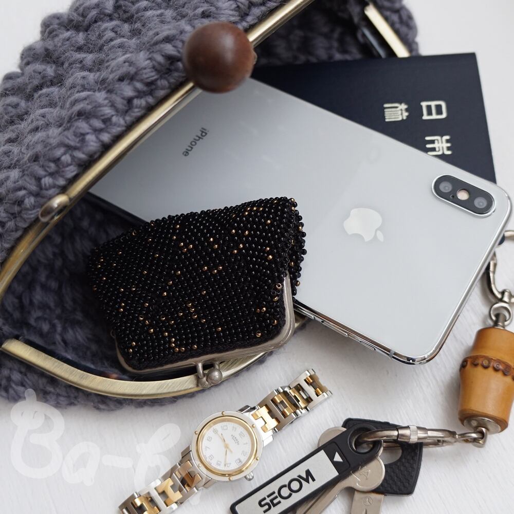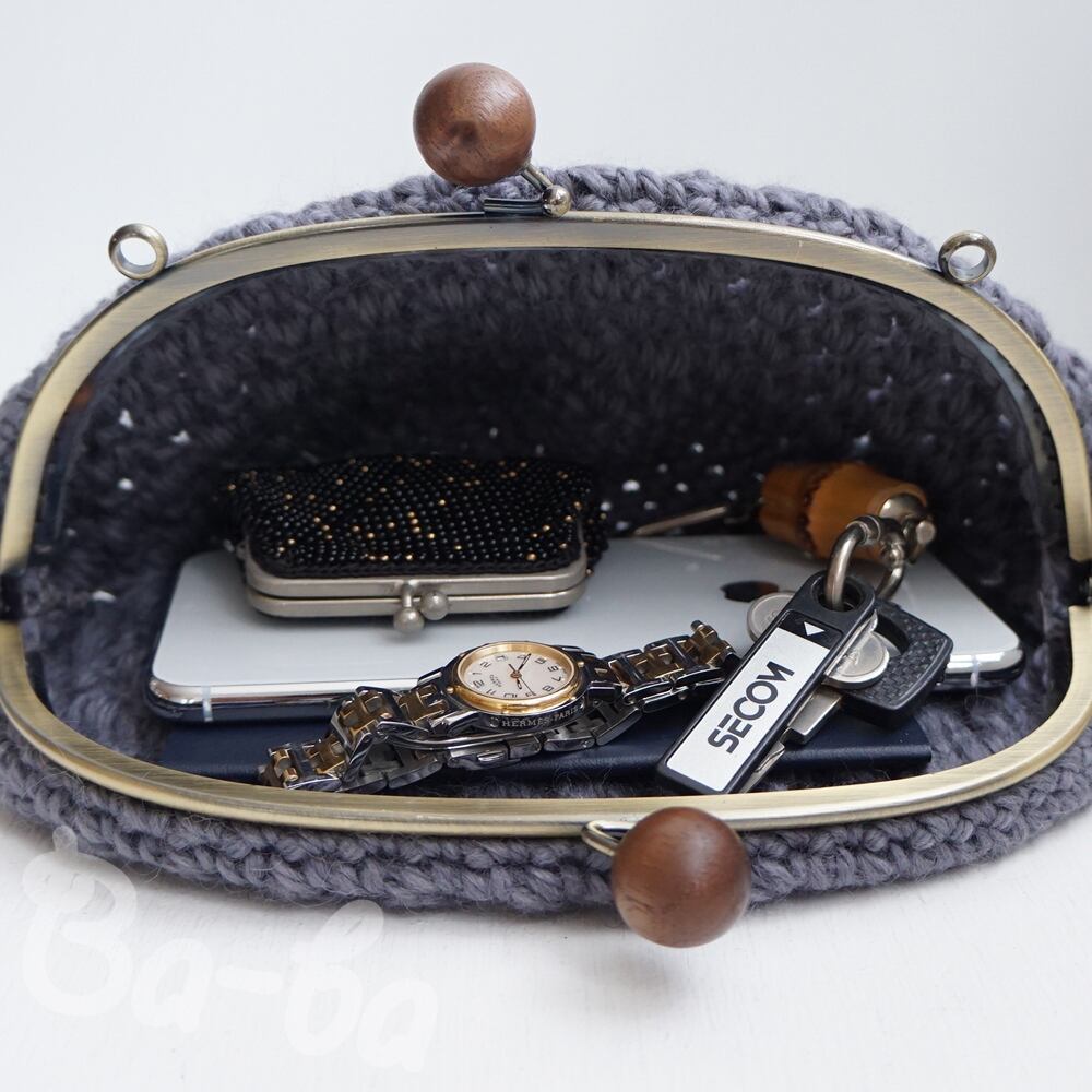 くし型20.5cm口金のがま口は大きめスマホもすっぽり入ります。