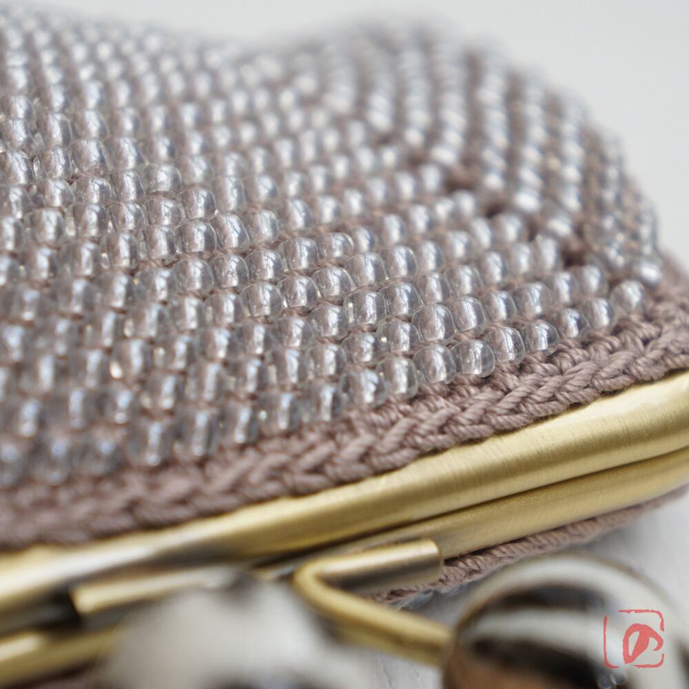 3mmのガラスビーズをひとつぶづつ、全面に編み込みました。