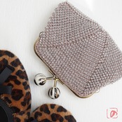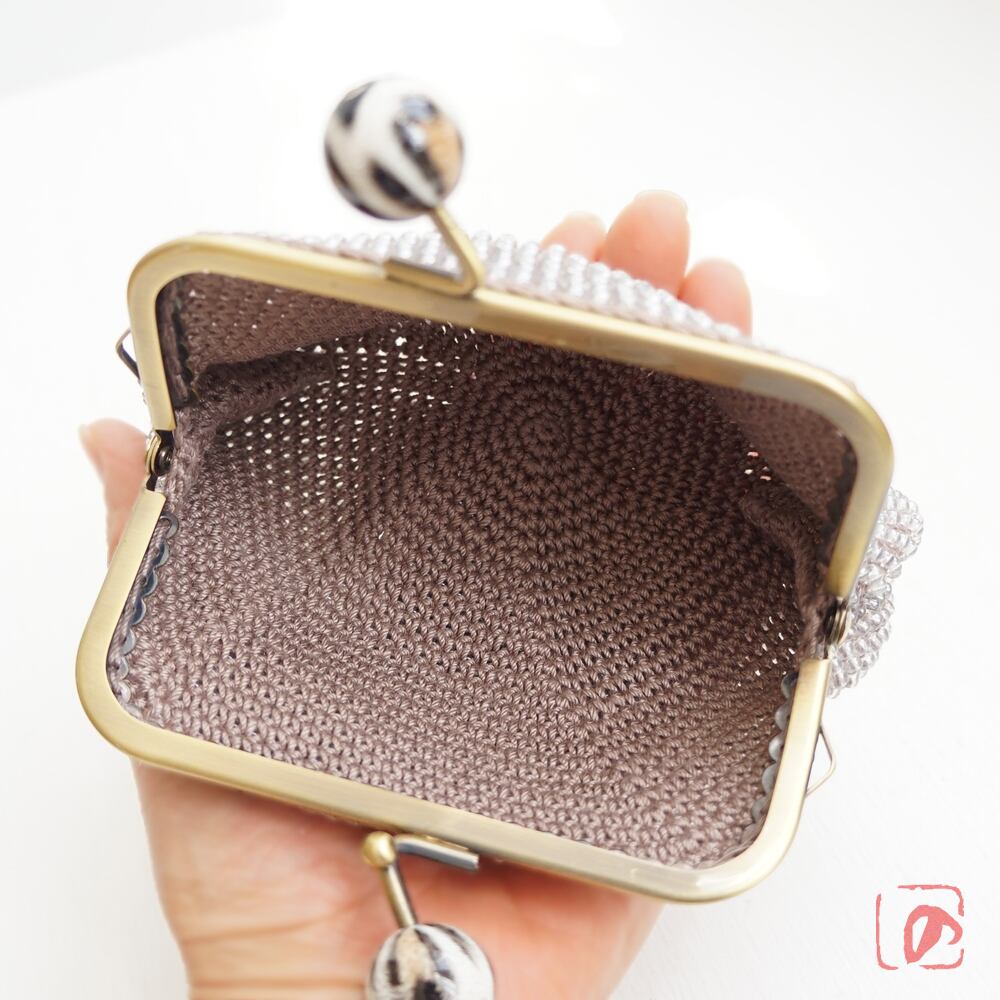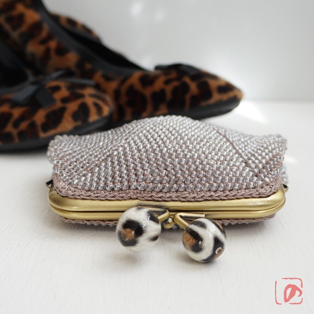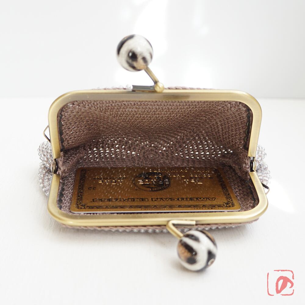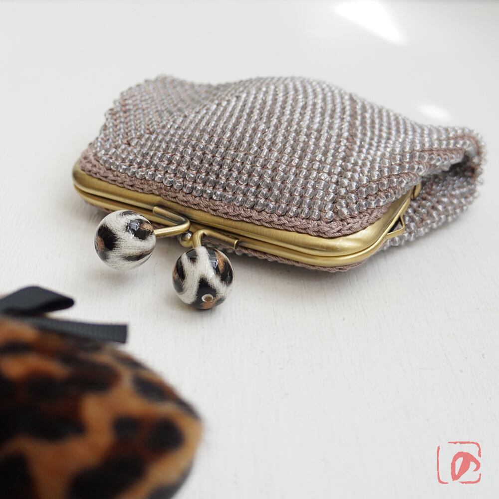 ばあば作、大きめ・総ガラスビーズのスクエアがま口(pardus・1825)