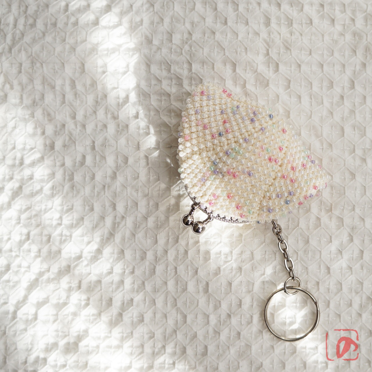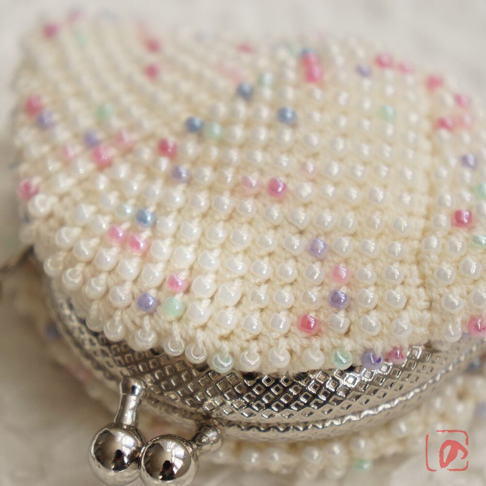 2mmのシードビーズをひとつぶづつ全面に編み込んだ、上質ながま口です。