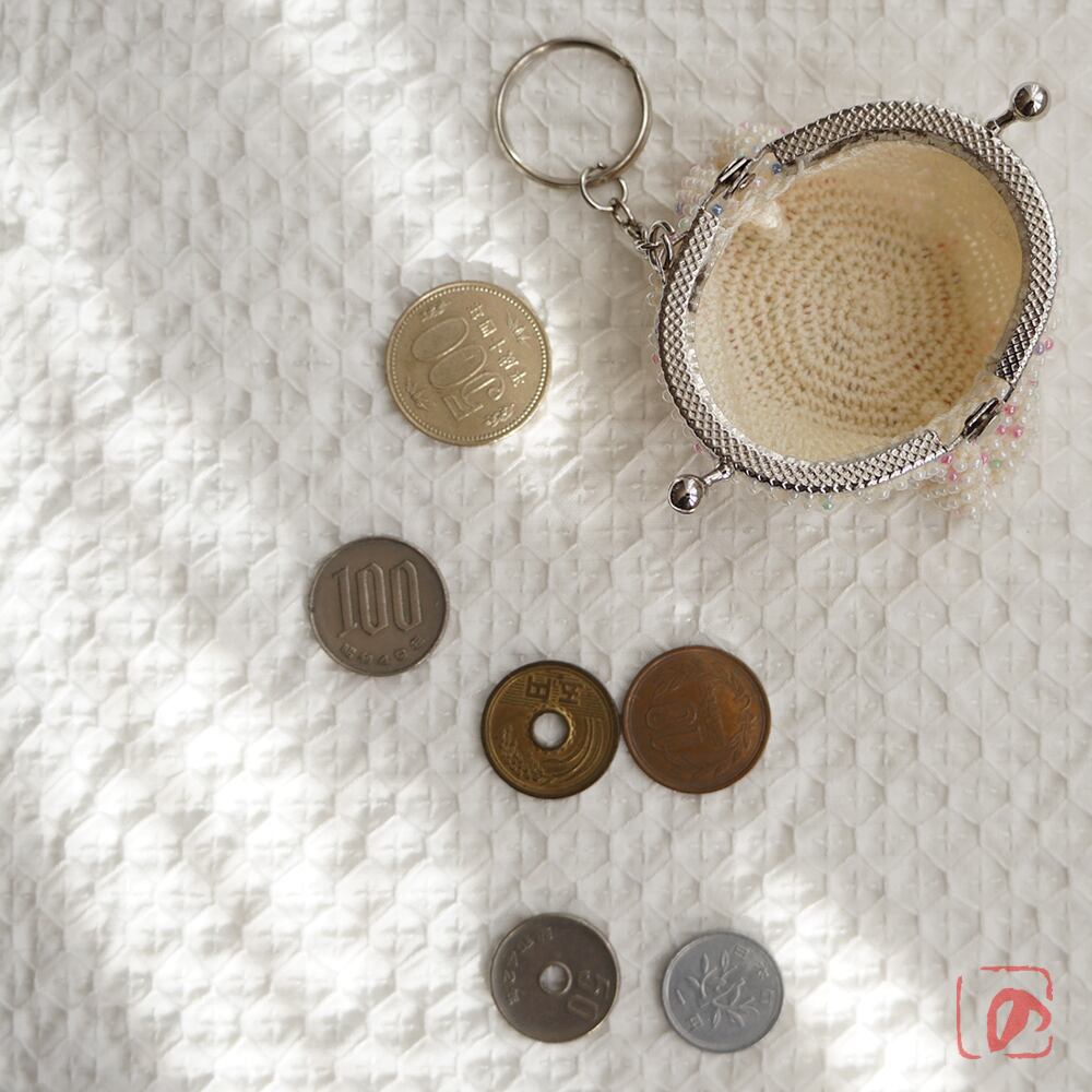 5.0cmの口金は、リングとチェーン付きでおでかけのおともに最適です。