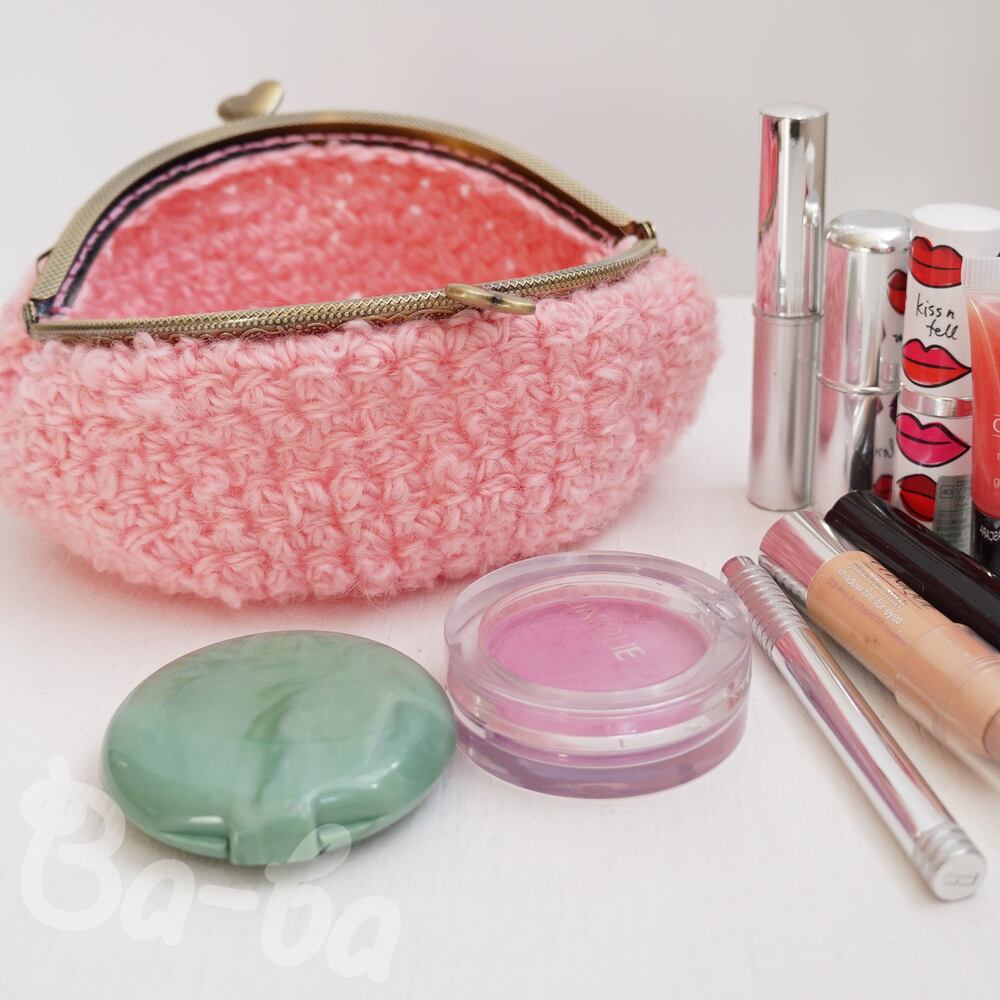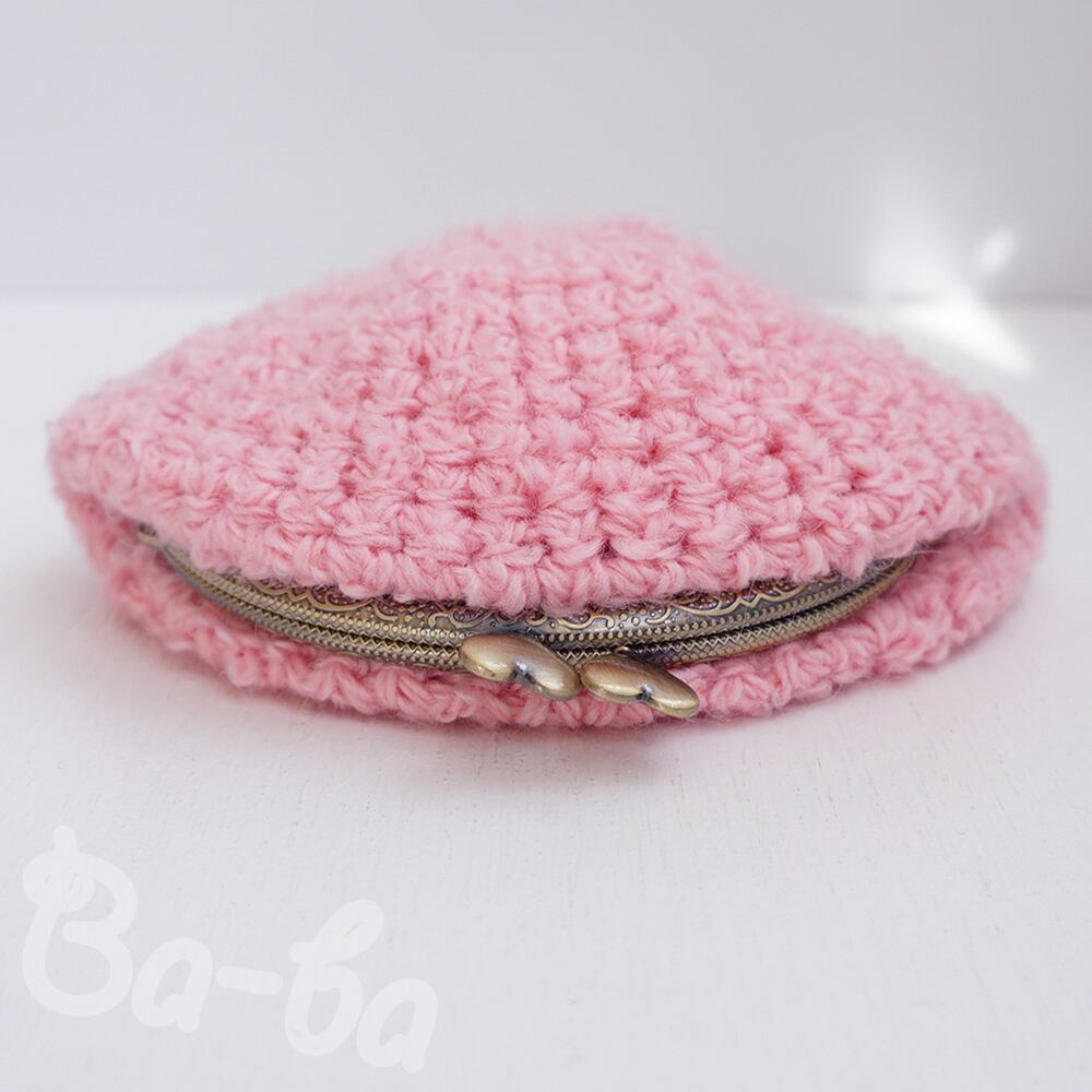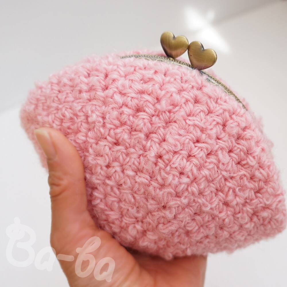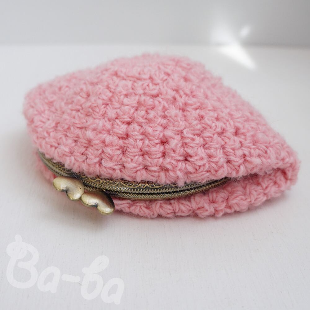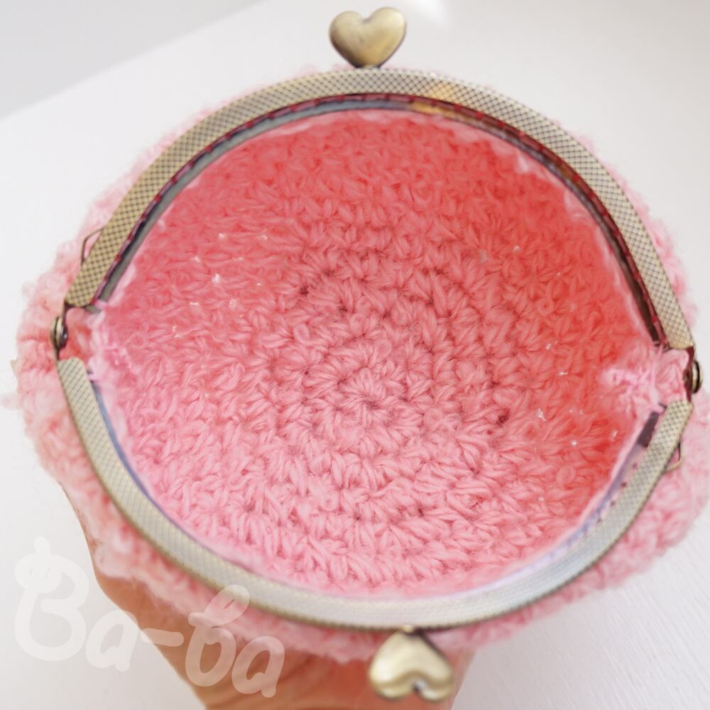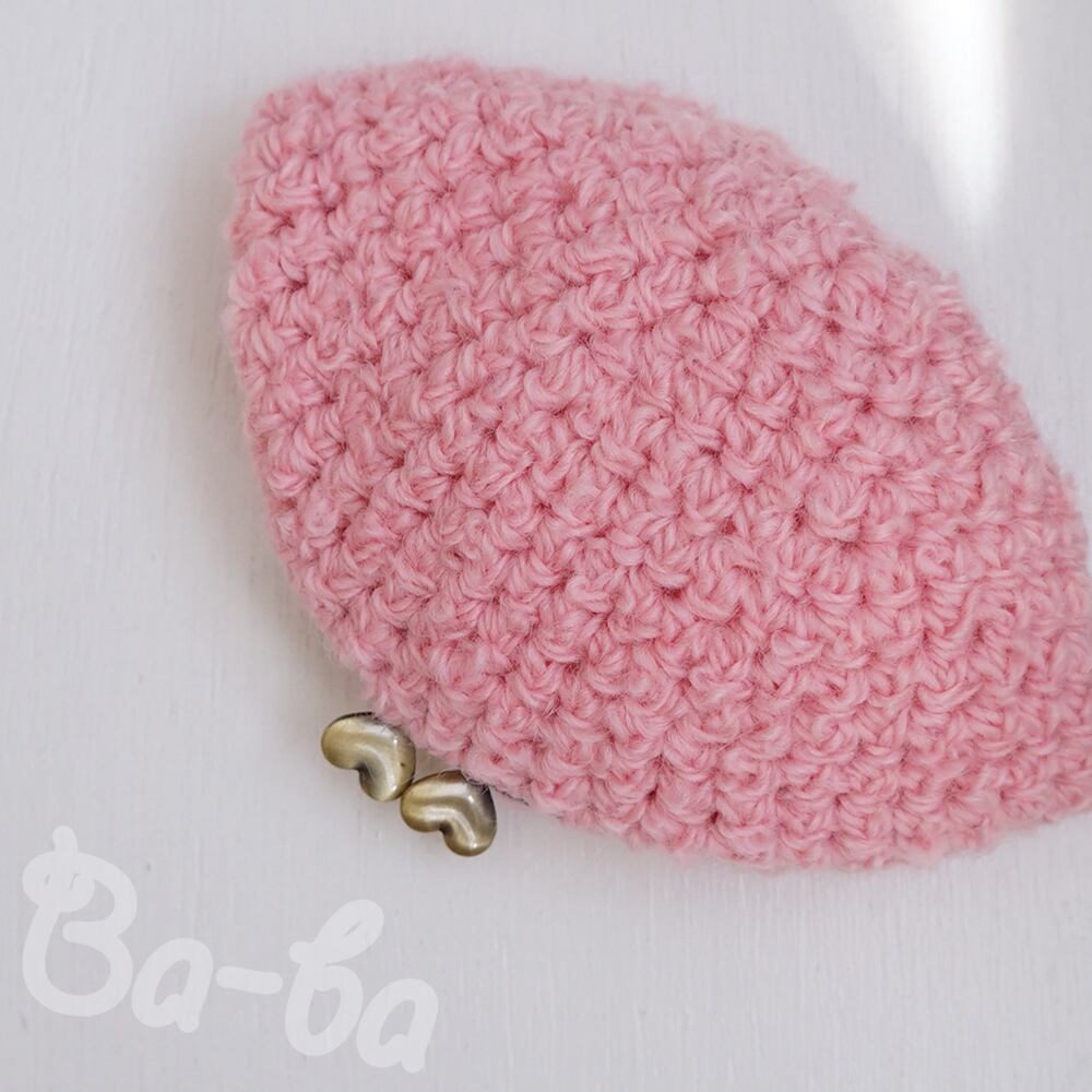 ピンクのループヤーンを編み上げ、ふんわり軽~いがま口に仕上げました。
