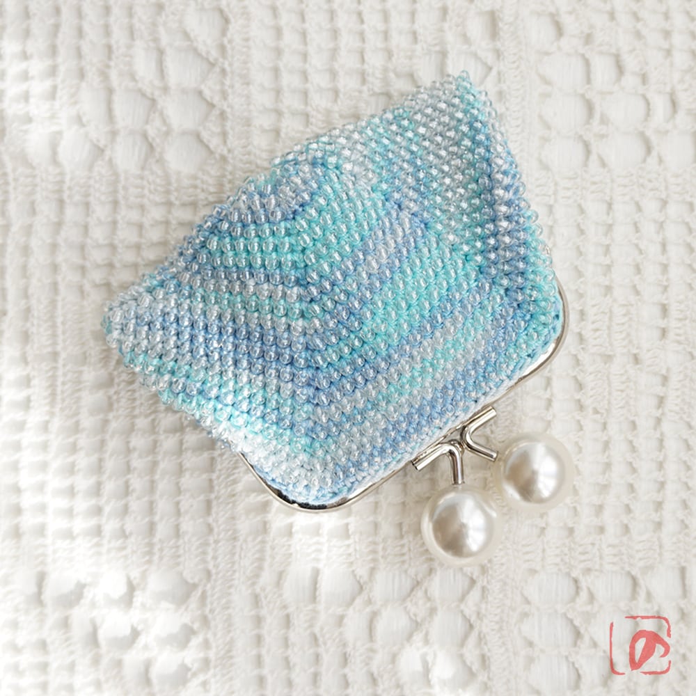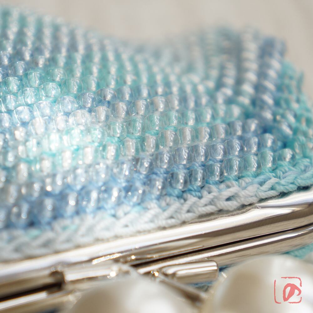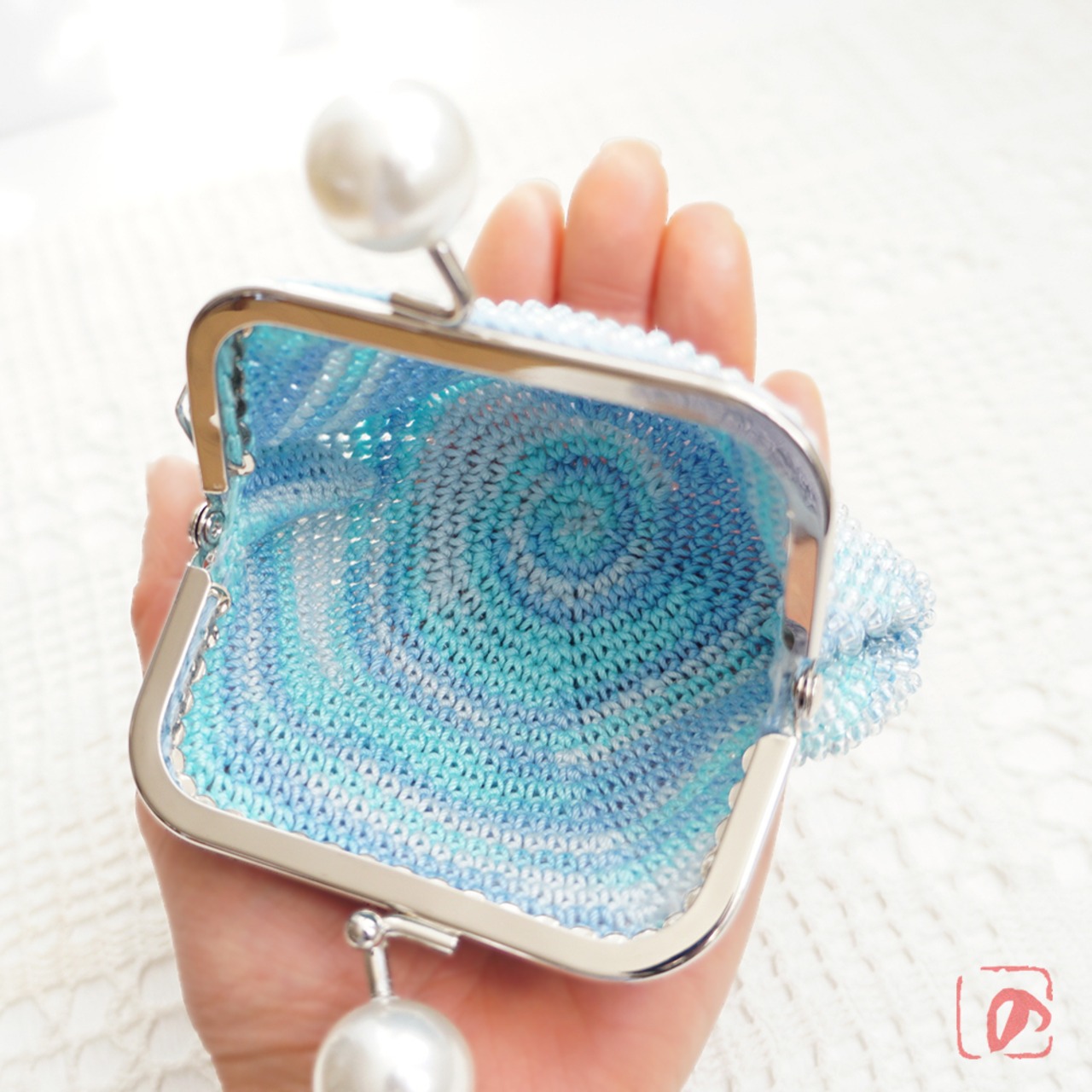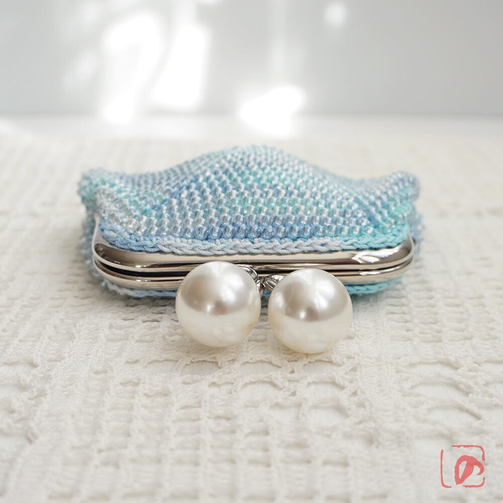 ばあば作☆☆総ガラスビーズの「大きめパール」スクエアがま口(Mare・1846)