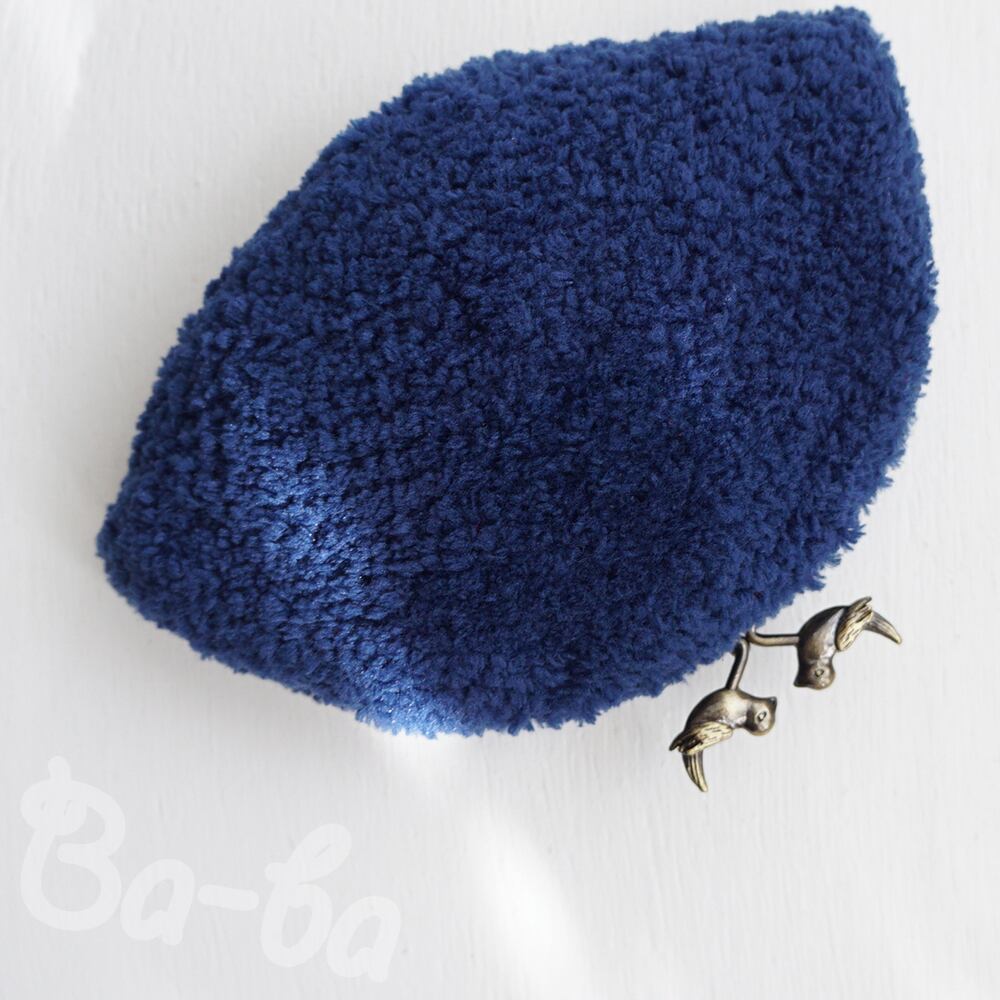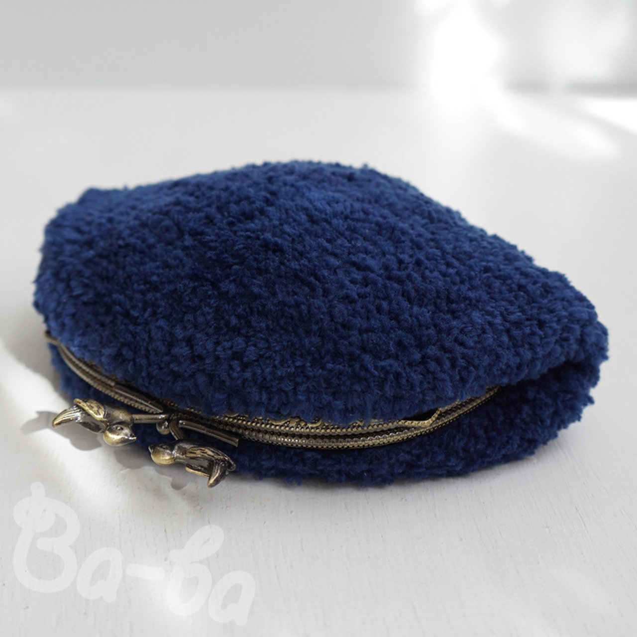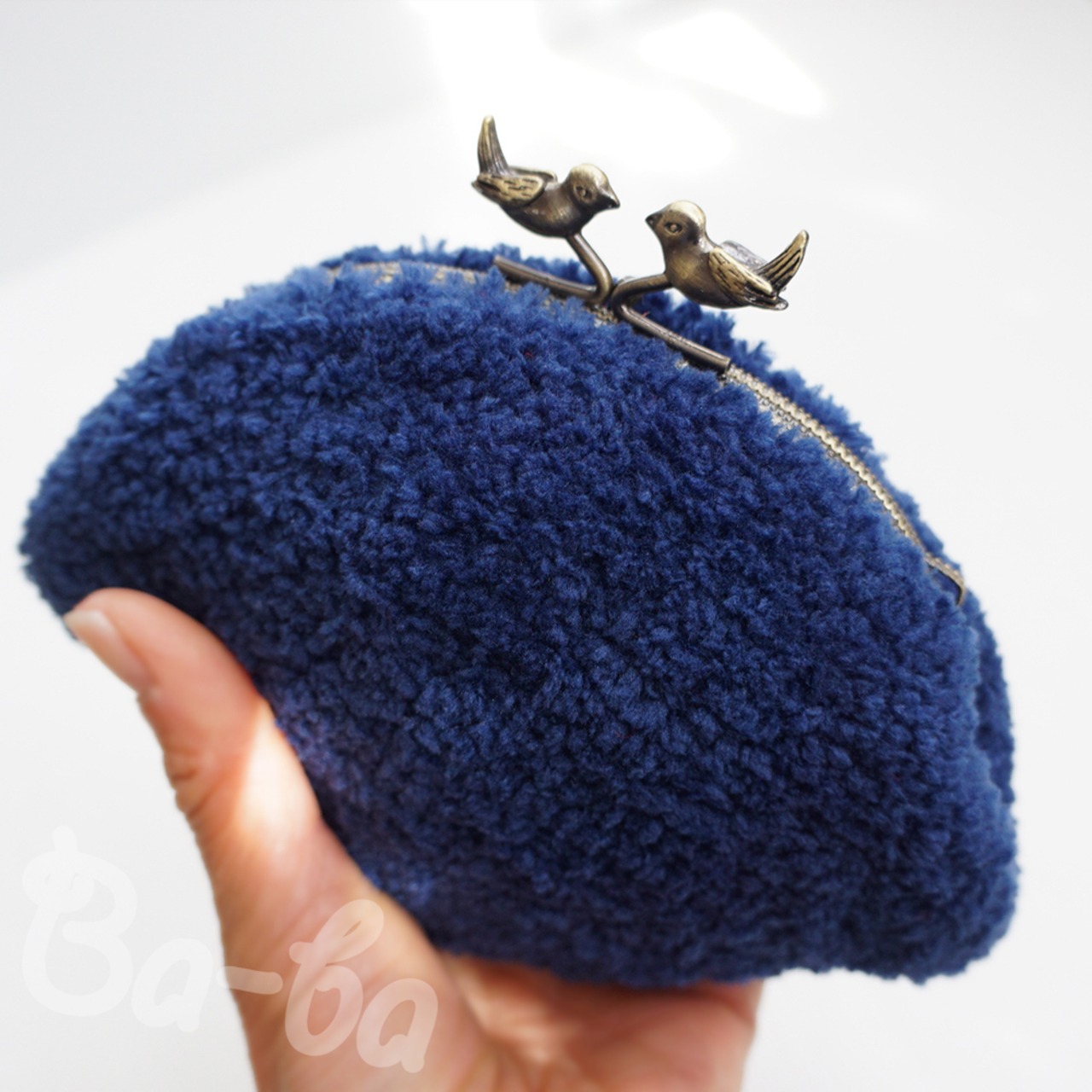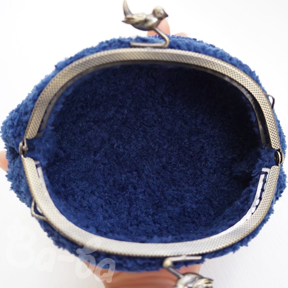 ばあば作☆さらに大きめ・ふわふわモールヤーンのがま口(紺鳥・C1651)