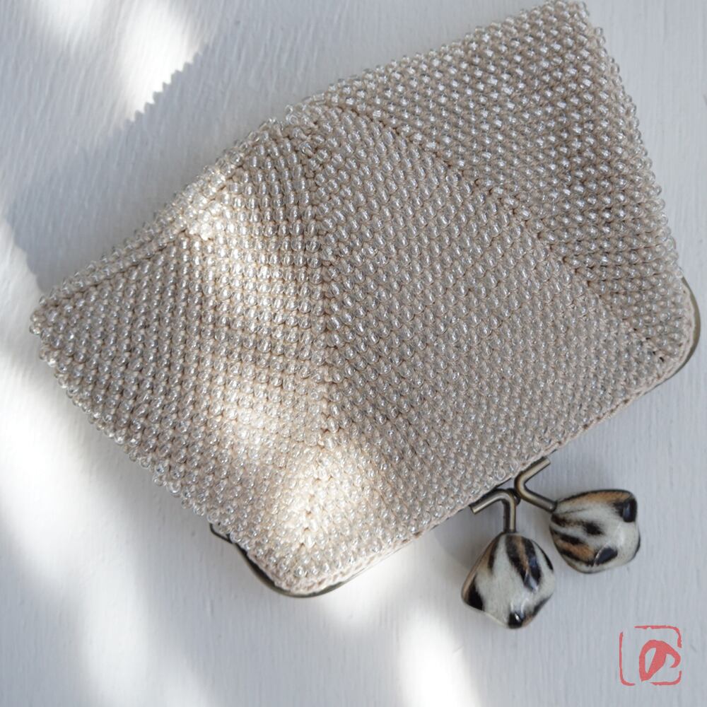 ばあば作☆☆さらに大きめ・ガラスビーズのスクエアがま口(Chui・1817)
