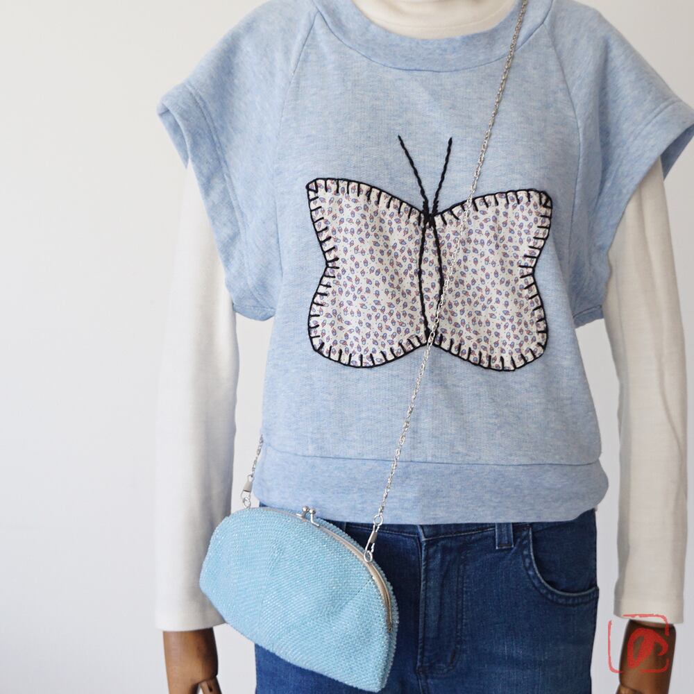 糸 : 混紡サマーヤーン(銀ラメ入り水色)