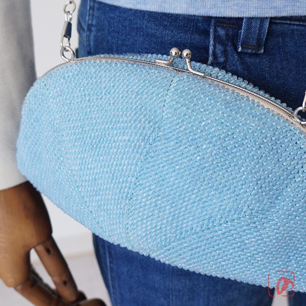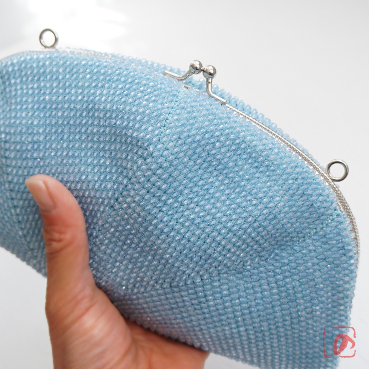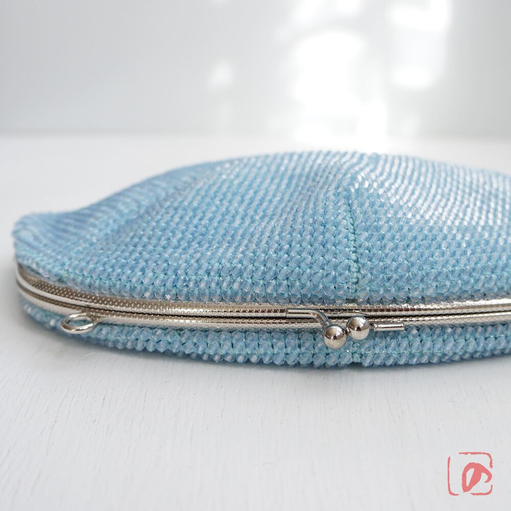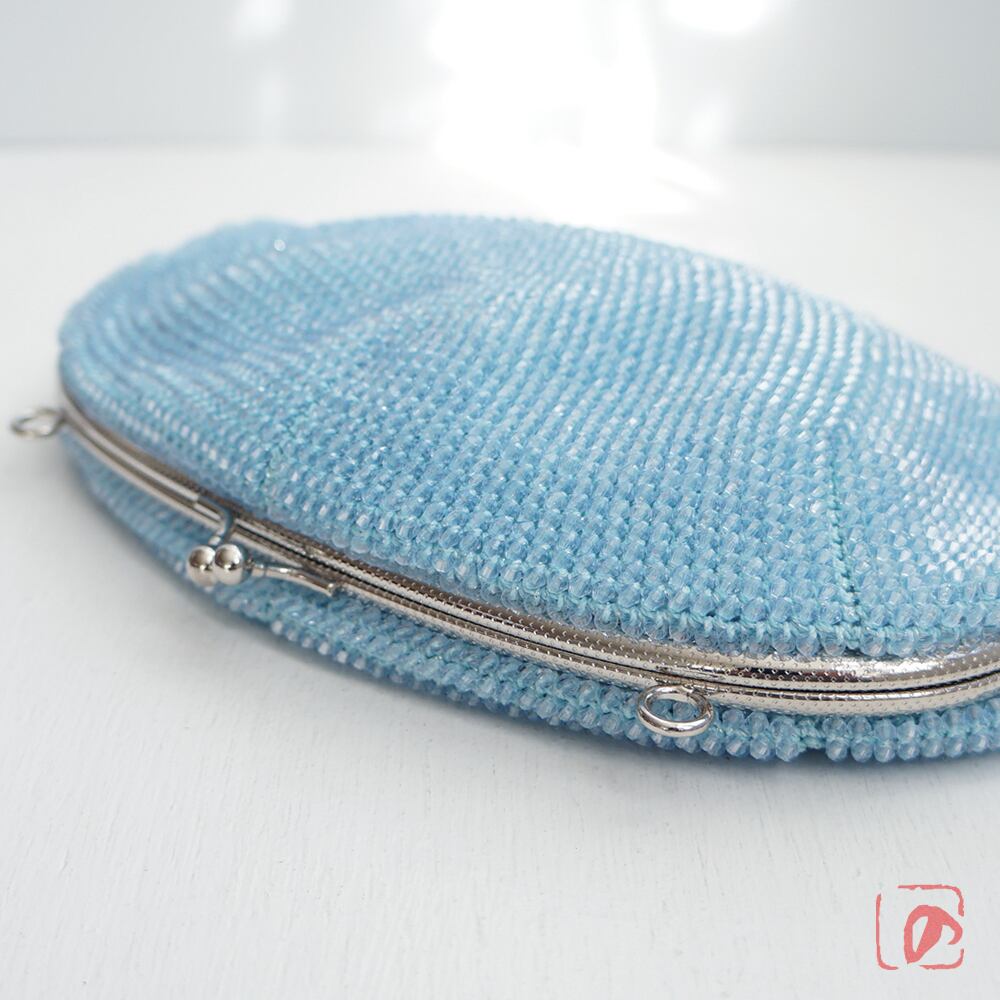 ばあば作☆キラキラ☆☆アクリルビーズのがま口バッグ(sparkly aqua・1857)