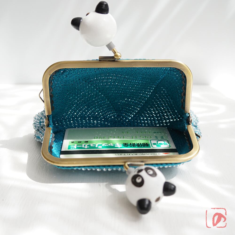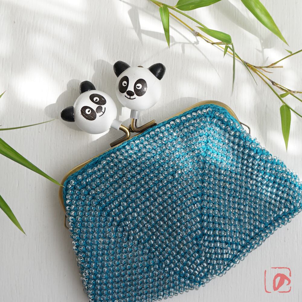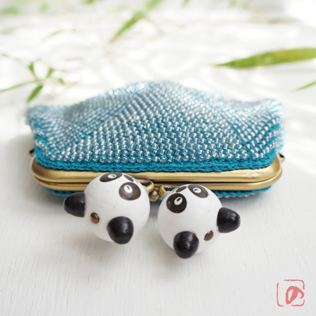 ばあば作 ♬ 仲良しパンダのビーズがま口(嘉嘉・1682)