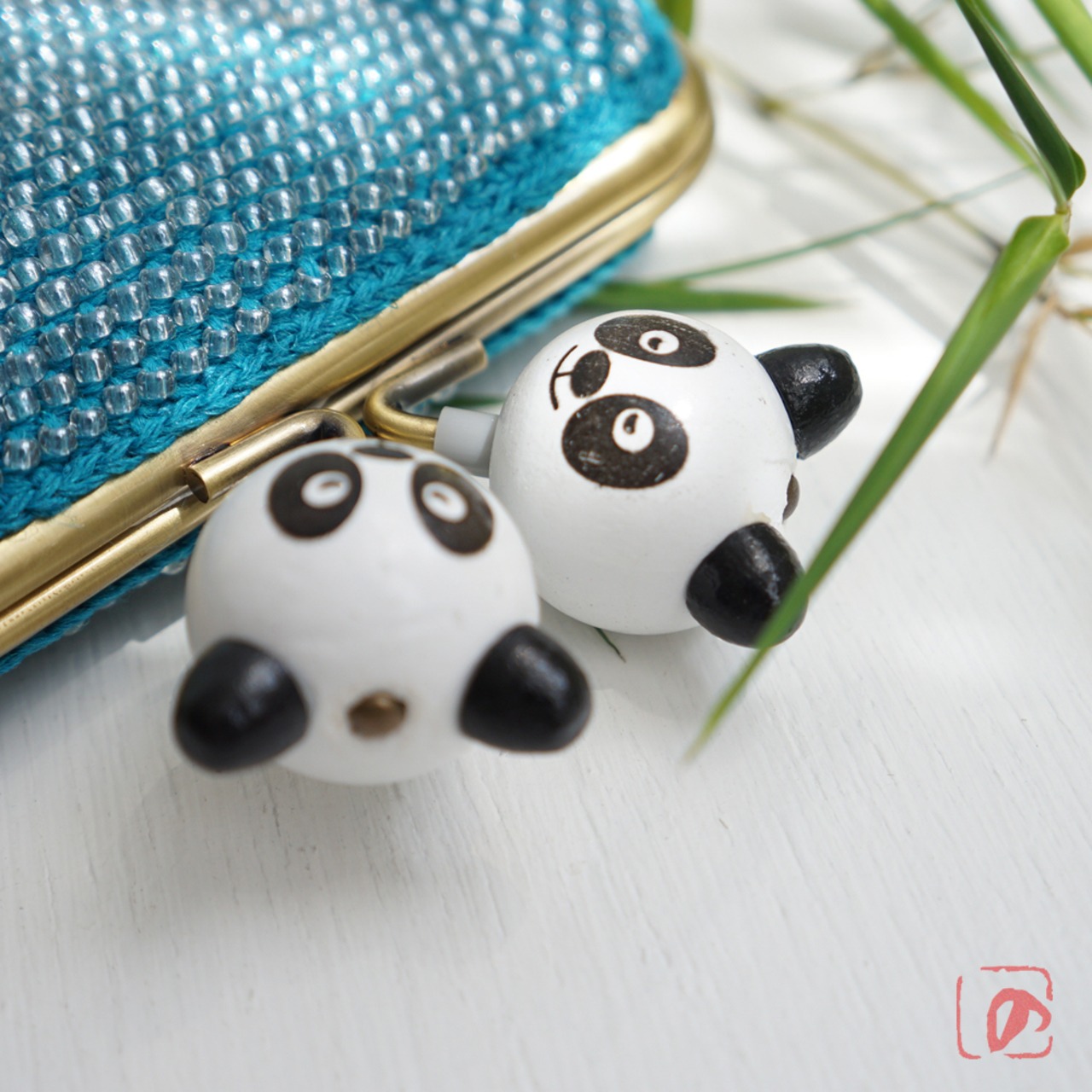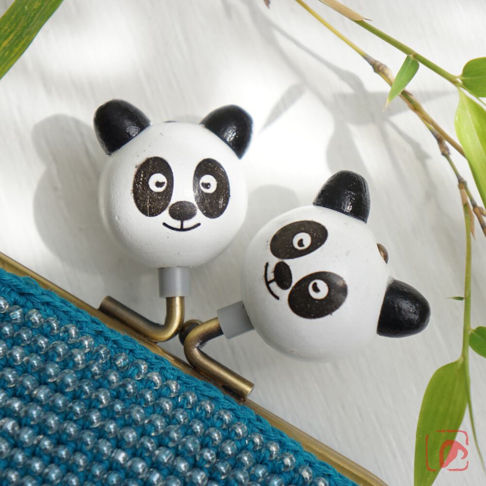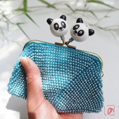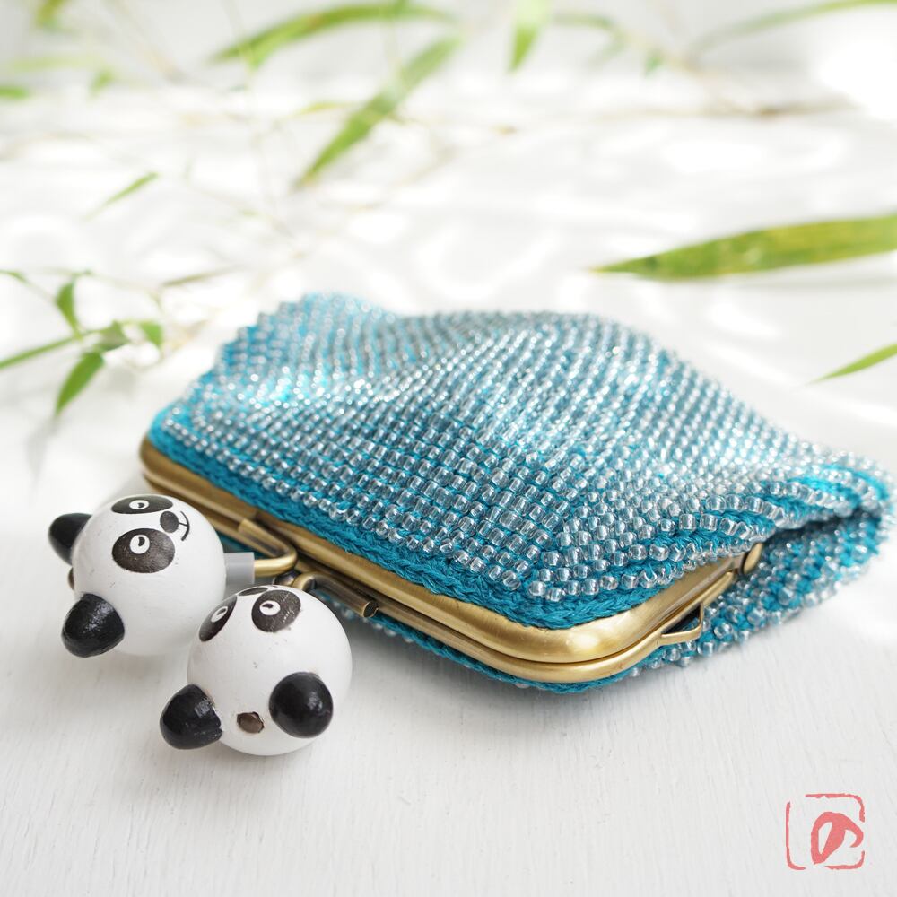 ばあば作 ♬ 仲良しパンダのビーズがま口(嘉嘉・1682)