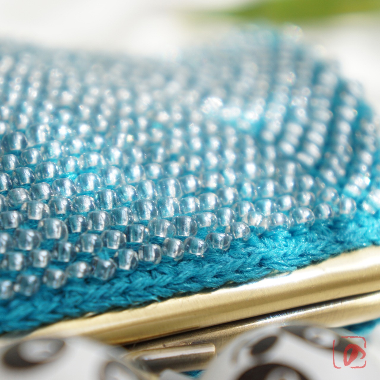 3mmのガラスビーズをひとつぶづつ、全面に編み込みました。