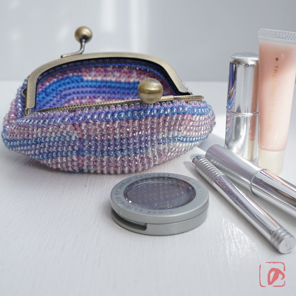ばあば作、ガラスビーズの大きめがま口(variety・1860)