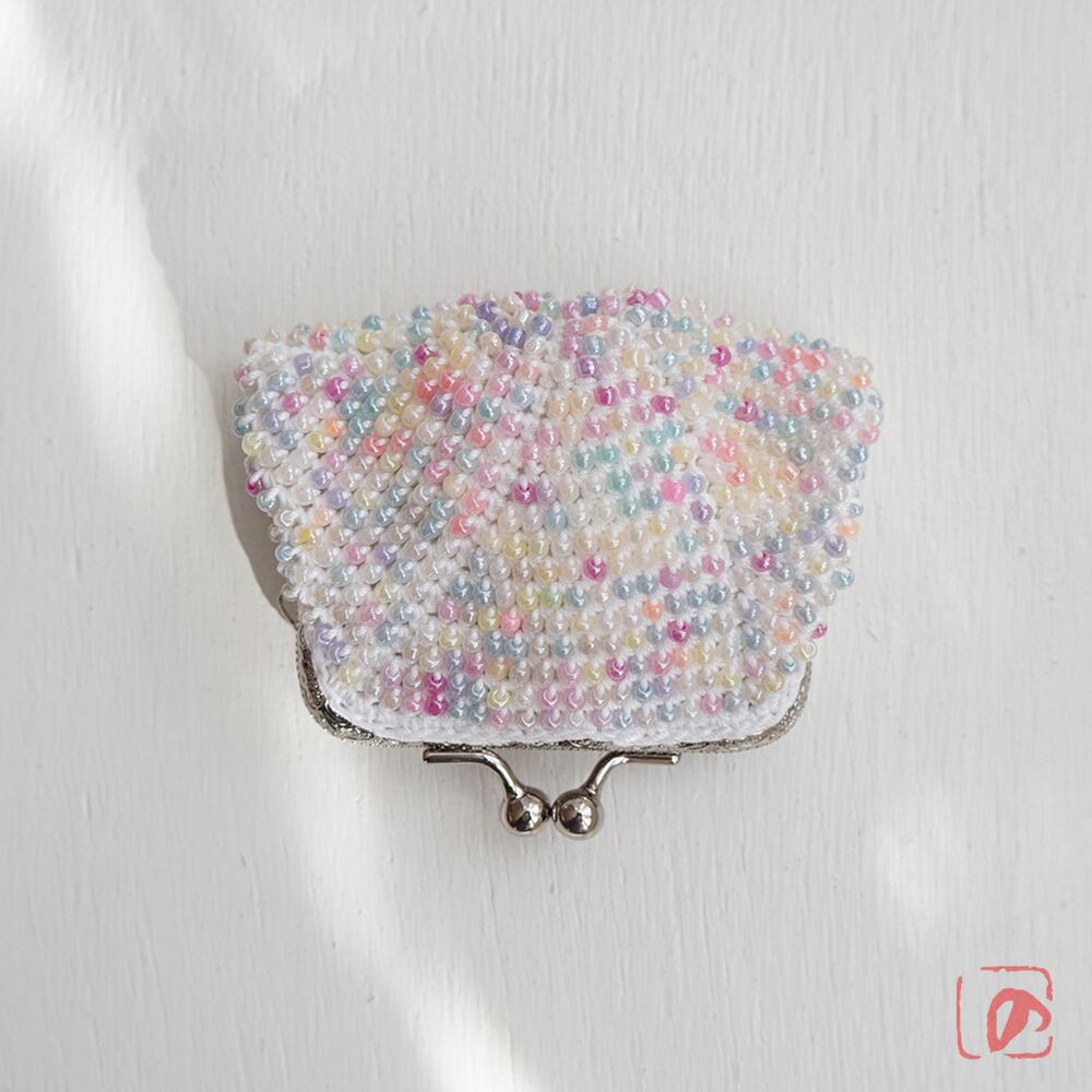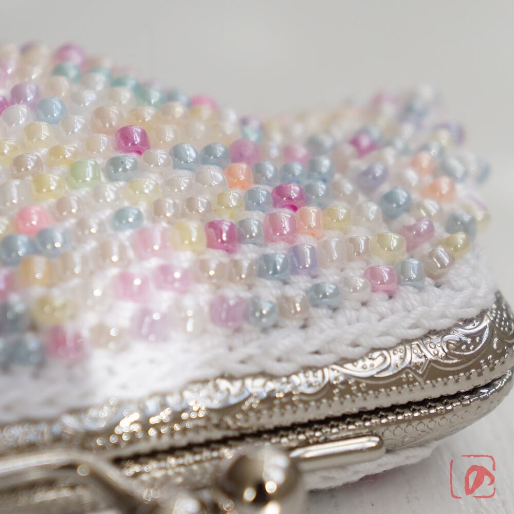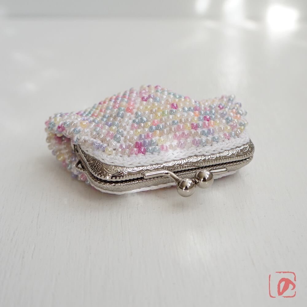 3mmのガラスビーズをひとつぶづつ編み込んだがま口です。