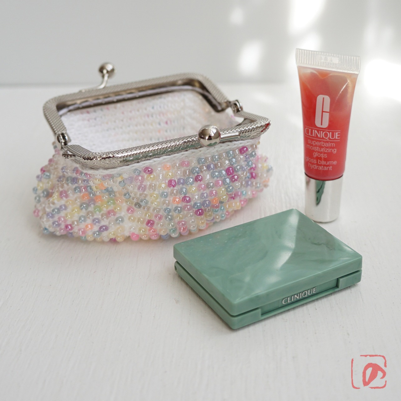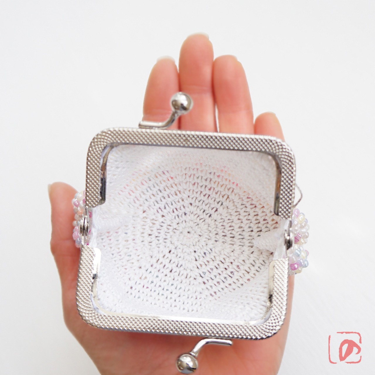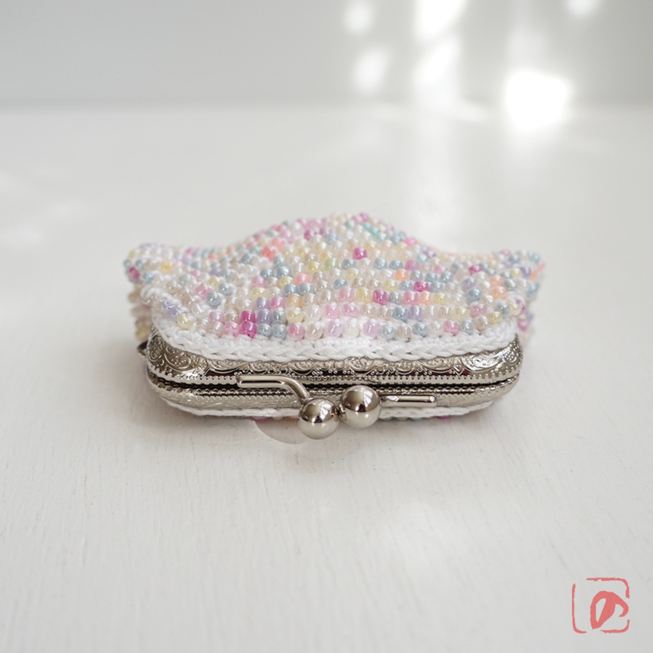 3mmのガラスビーズをひとつぶづつ編み込んだがま口です。