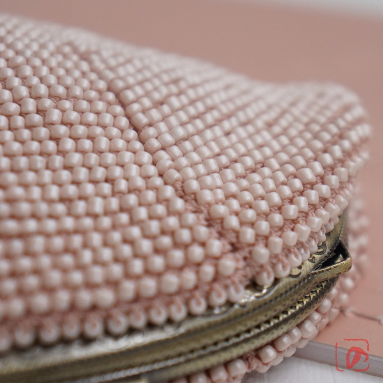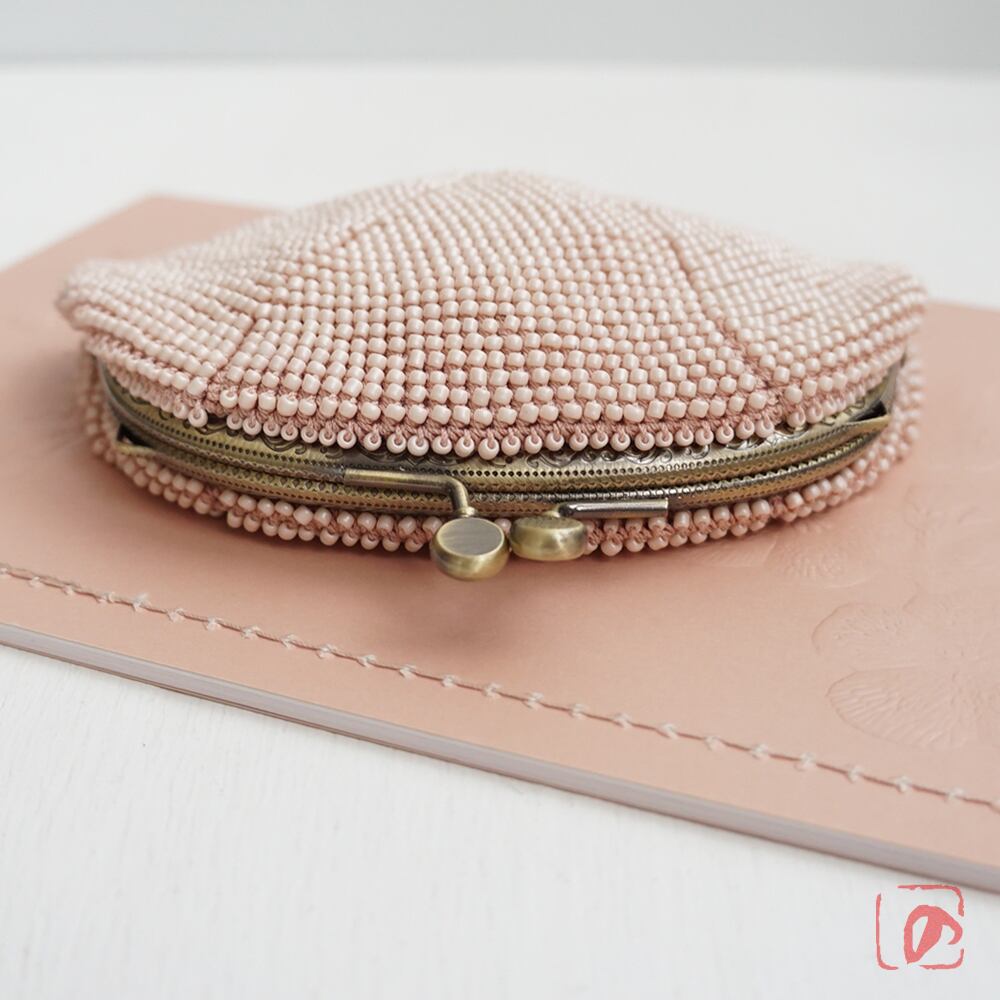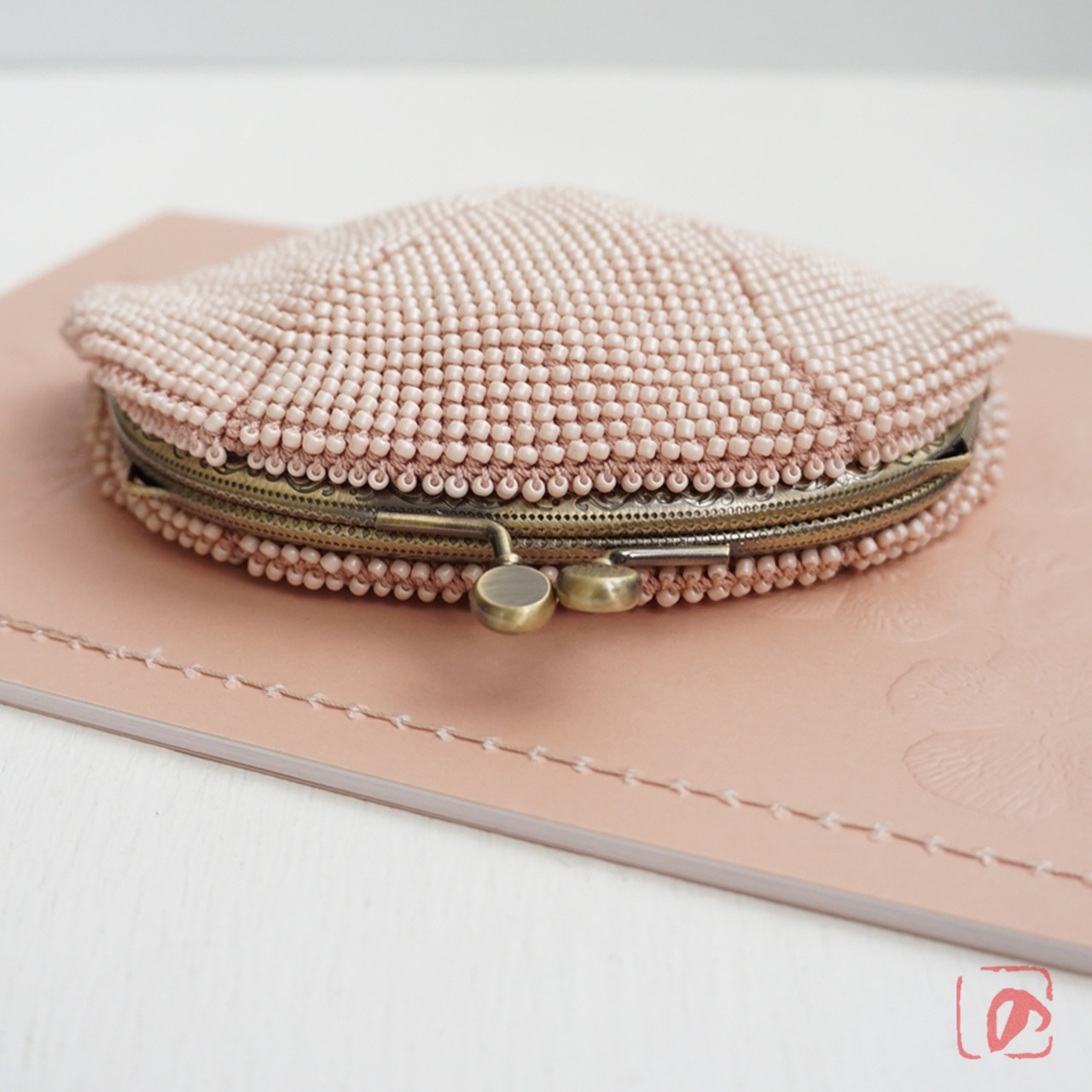 ばあば作☆シードビーズのさらに大きめがま口(peach pearl・1864)