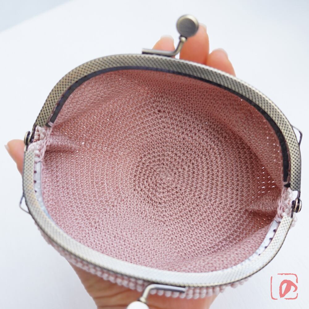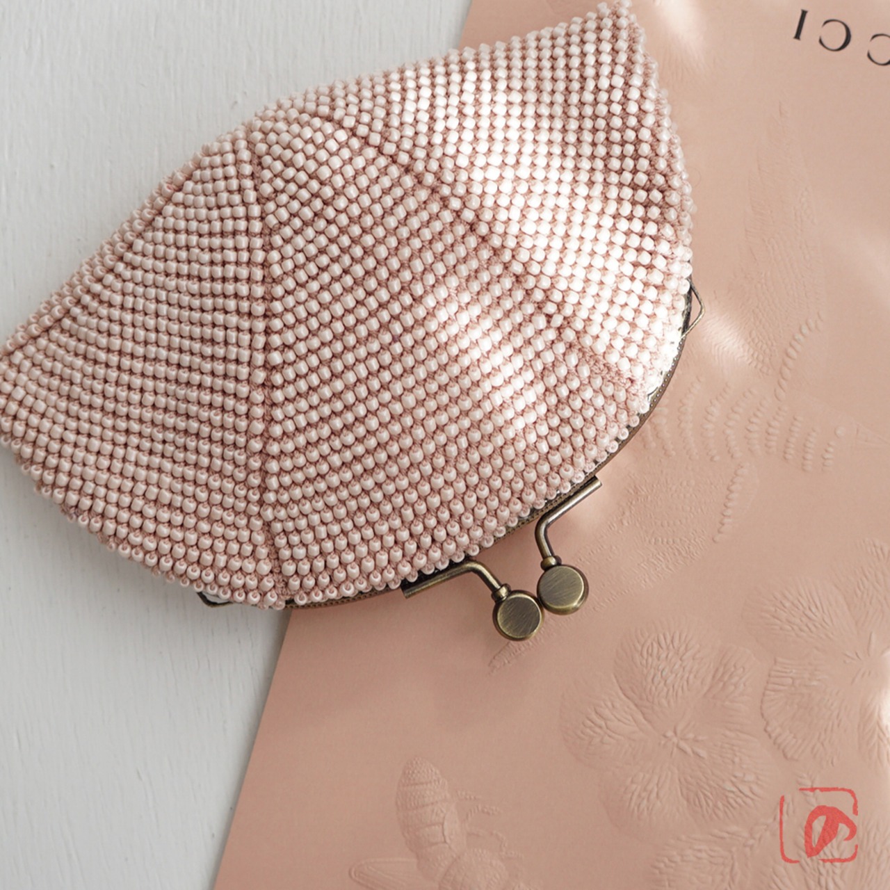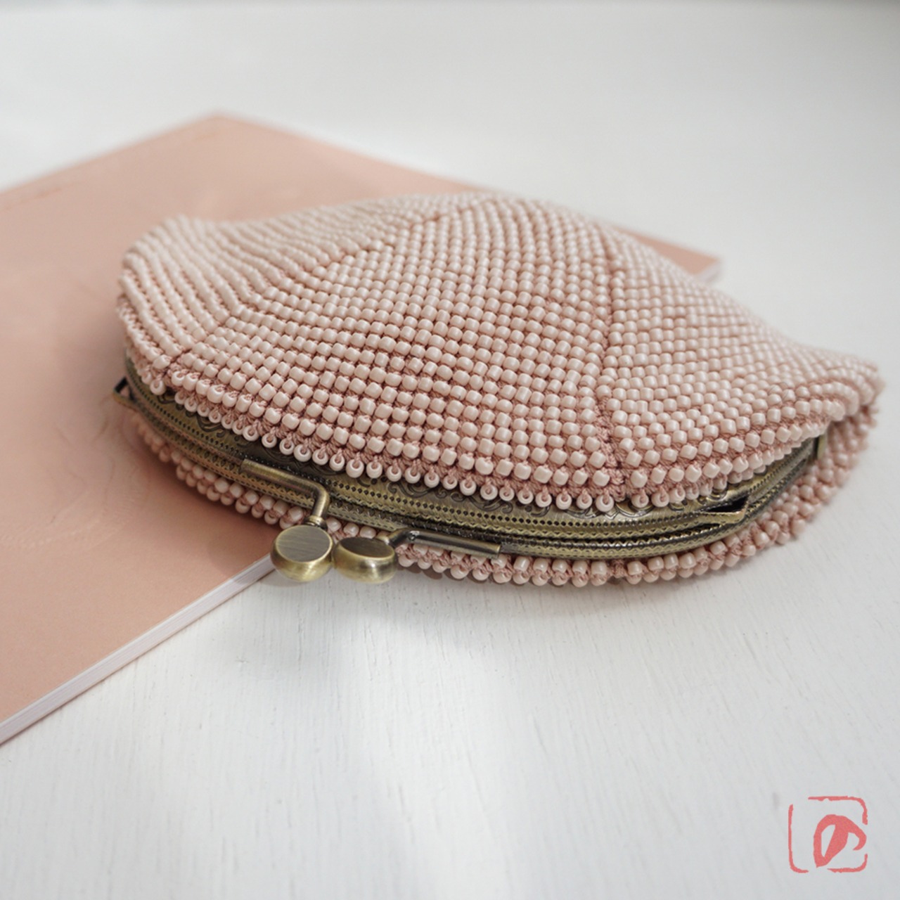 ばあば作☆シードビーズのさらに大きめがま口(peach pearl・1864)