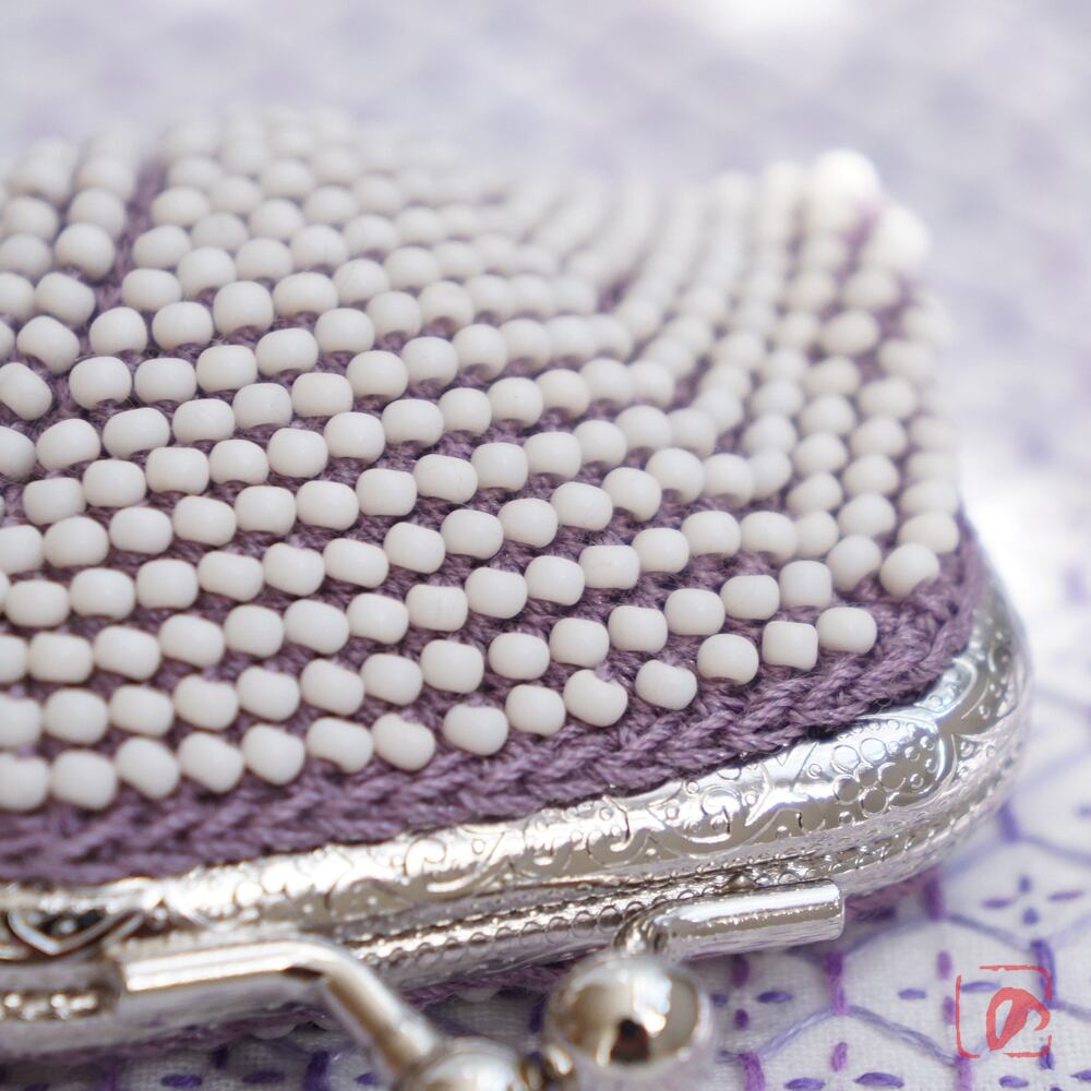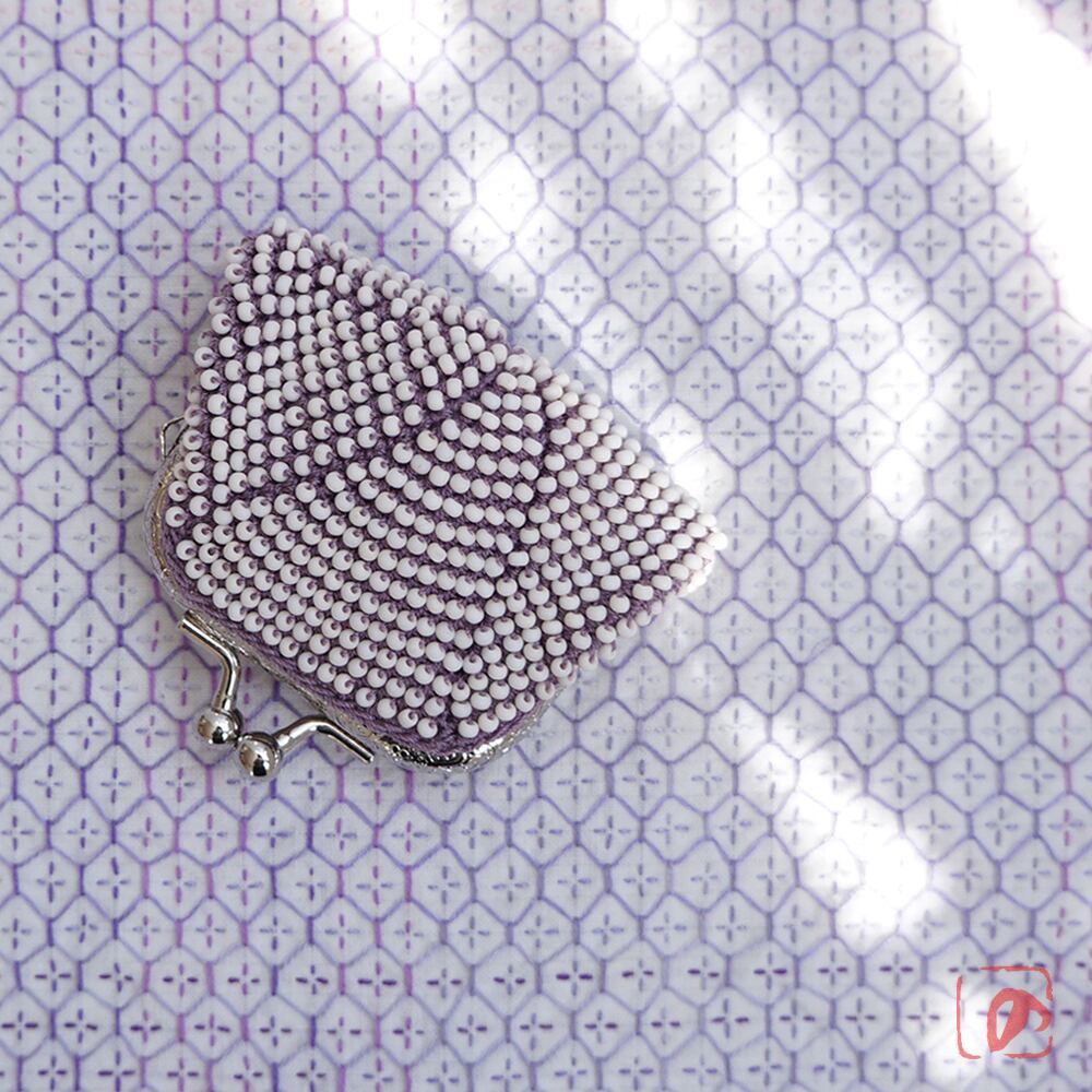ガラスビーズをひとつぶづつ全面に編み込んだ上質ながま口です。